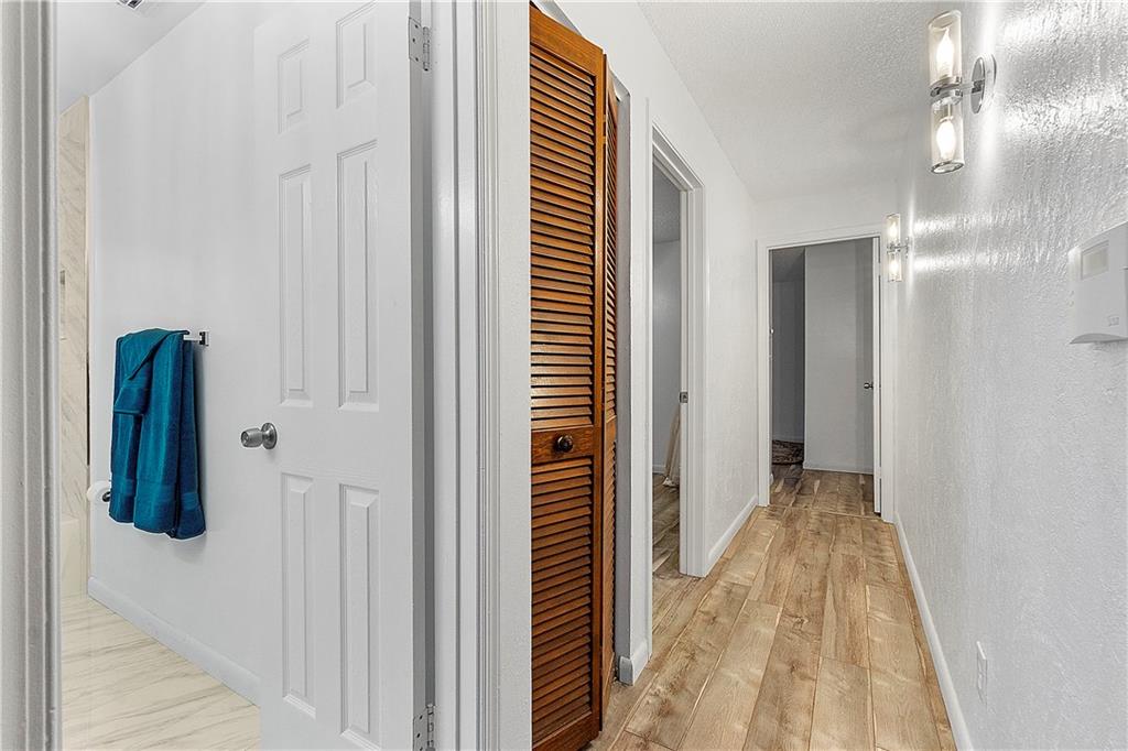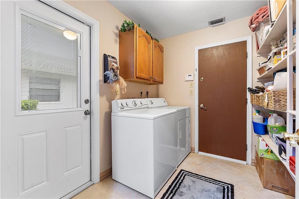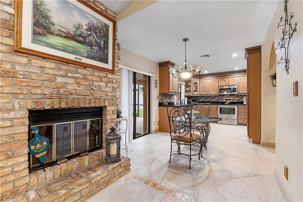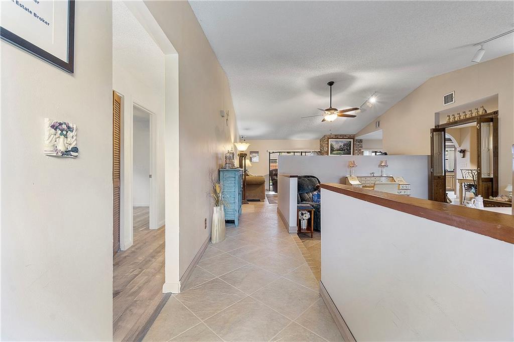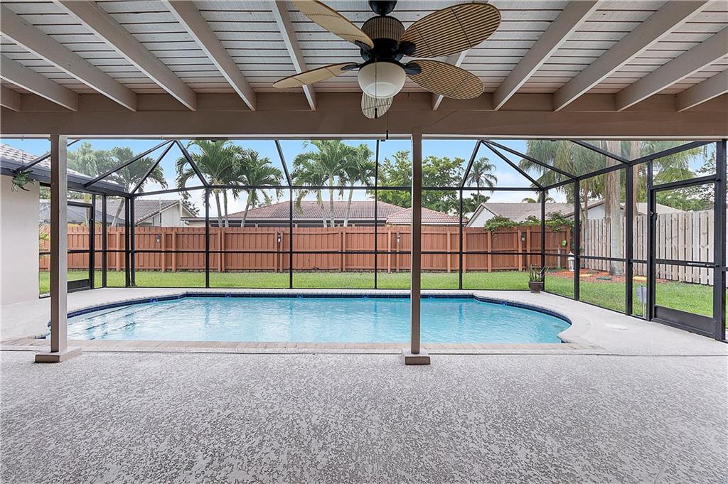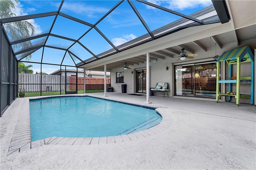 Beautifully Updated 4 BR/2 BA Home with Screened Pool & Fenced Back Yard! New Primary Bath 2022 & Guest Bathroom 2023. Kitchen Updated, 2017, with Custom Wood Cabinetry, Granite Countertops, Glass Tile Backsplash & SS Appliances. Cabinets offer Lazy Susan, Soft Close Drawers & Deep Pantry with Pull Out Shelves. Neutral Tile installed 2017 throughout Living Area & New LVP Floors in Bedrooms 2023. Open & Flexible Floor Plan with Vaulted Ceilings. Split Stack Bedroom Plan. Wood Burning Fireplace. Interior Laundry Room includes Washer/Dryer & Cabinets/Shelves for extra Storage. Laundry Room w/door opens to side yard. Accordion Hurricane Shutters except panels for pass through window in Kitchen. Spacious Covered Patio w/Cool Deck. Screen Pool w/Diamond Brite finish. Walk to Cypress Park.
