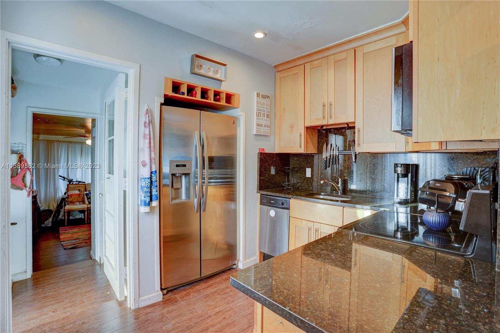 This 3 bedroom home in the sought-after neighborhood of Alta Vista is full of Fort Lauderdale charm! The home features a split floor plan with beautiful wood tile flooring throughout, impact windows and doors, updated kitchen with wood cabinetry, granite countertops and stainless steel appliances and a bright and airy Florida/Sun room. Outside enjoy a shaded front yard patio and an ample fenced in backyard with enough room for a pool, a long concrete driveway with tons of parking space, large fruitful mango tree and so much more.