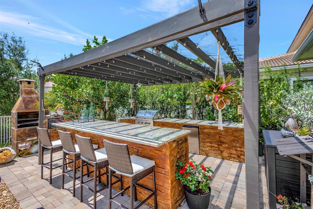 Incredible 3-bedroom and den, 2.5-bathroom home with an amazing outdoor entertainment area, which includes a Jacuzzi, outdoor kitchen and grilling area. Desirable open-concept living area and a spacious kitchen. The primary bedroom features an en-suite bathroom, with a tub a a huge walk in closet. Remaining bedrooms provide comfort for family or guests. Tile in the entire home. Impact glass windows, doors & garage door. New water system purifier recently installed. Updated Samsung refrigerator with touchscreen. Garage refrigerator stays with the property. Patio furniture negotiable. HOA fee includes yard maintenance. Community has pool, spa, playground, clubhouse & gym. Conveniently located near several shopping centers, grocery stores, restaurants, park and house of worship.