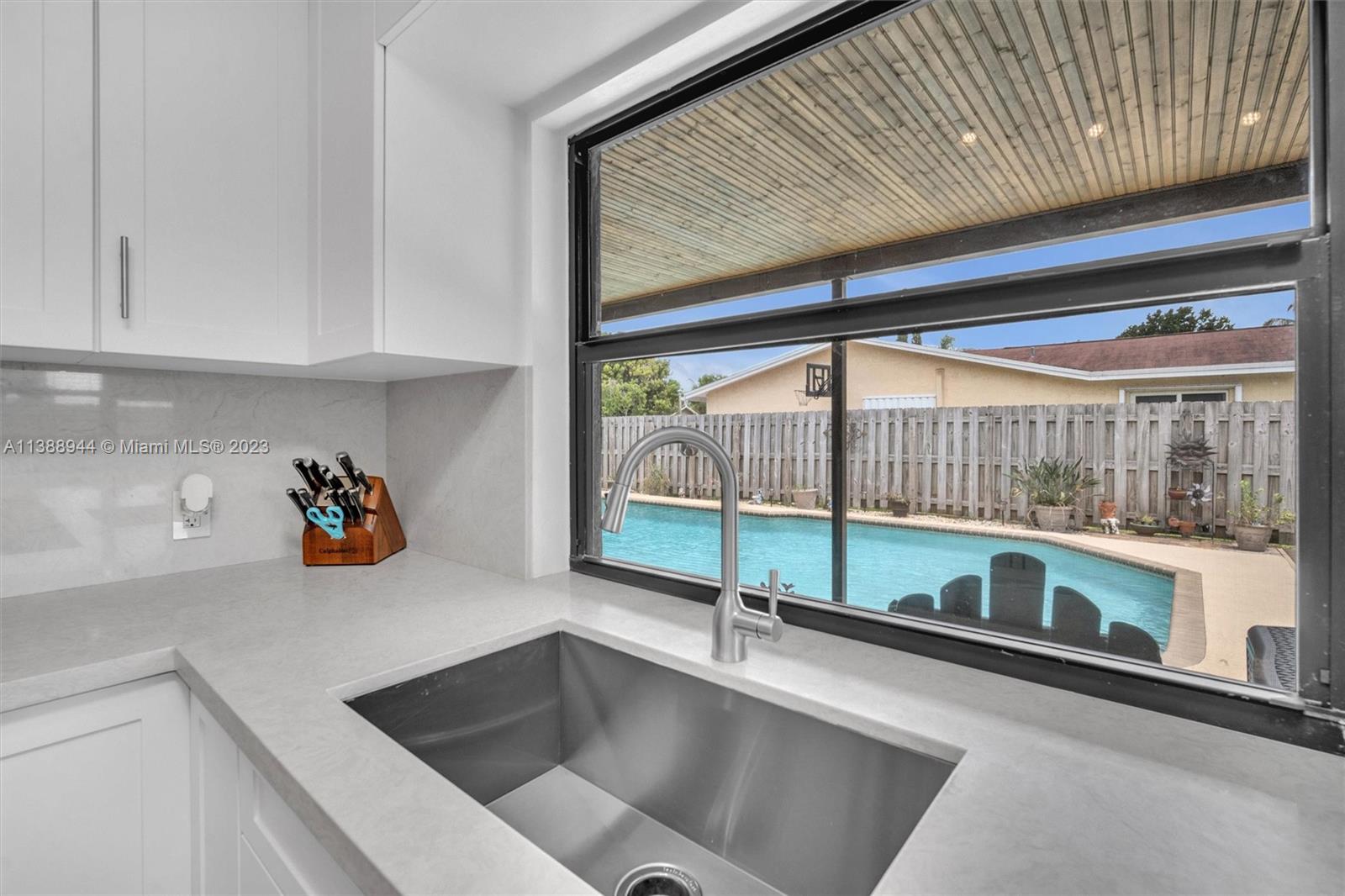 Gorgeous fully remodeled tropical paradise. NO HOA. 3 BR, 2 Bath heated pool home w/ big tiki hut, fully fenced yard on corner lot.Brand new kitchen w/top wood cabinetry, quartz counters, newer stainless appliances. Wall removed in remodeling to brighten, open living space. Easily one of the top homes in community. Private refuge in back, ready for stellar family or party time. New washer/dryer, newer roof, A/C, water heater, IMPACT WINDOWS, complete hurricane protection. Well-fed sprinkler system. Outstanding value single family pool home (pool apprx. 20'X42', 7' deep) and investment for less than many Pembroke Pines town homes. Broward/Pembroke Pines Schools, centrally located. Close to schools, parks, shopping, more, under 10 miles to beach. No HOA, no fees or bureaucracy!