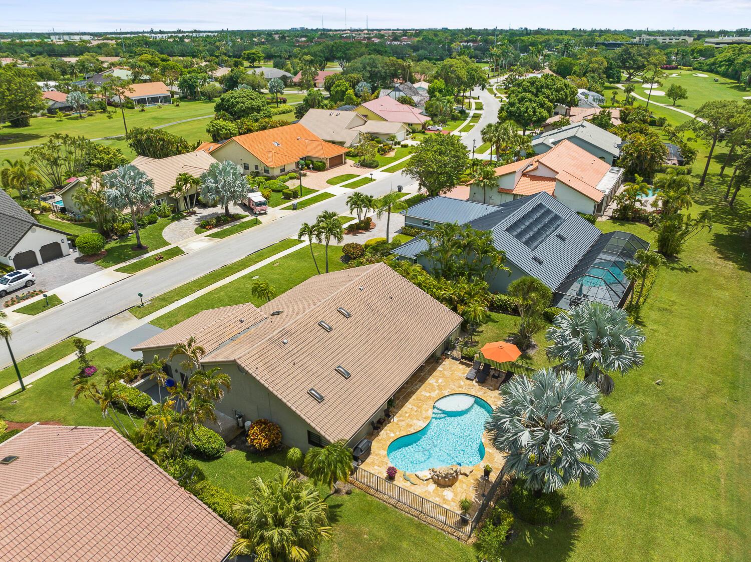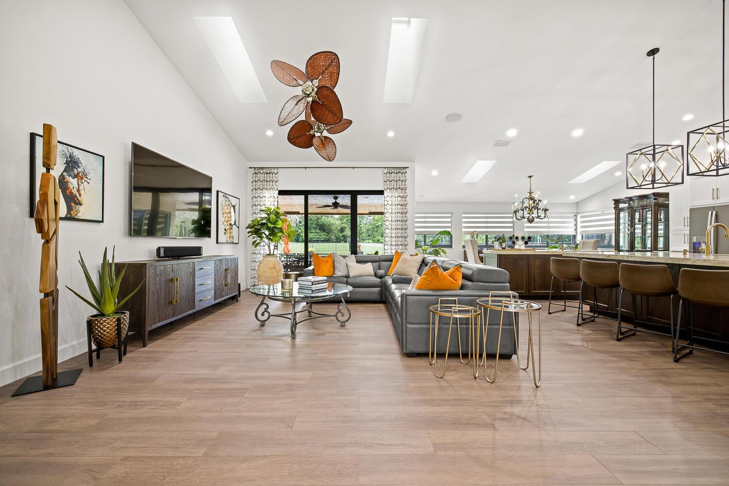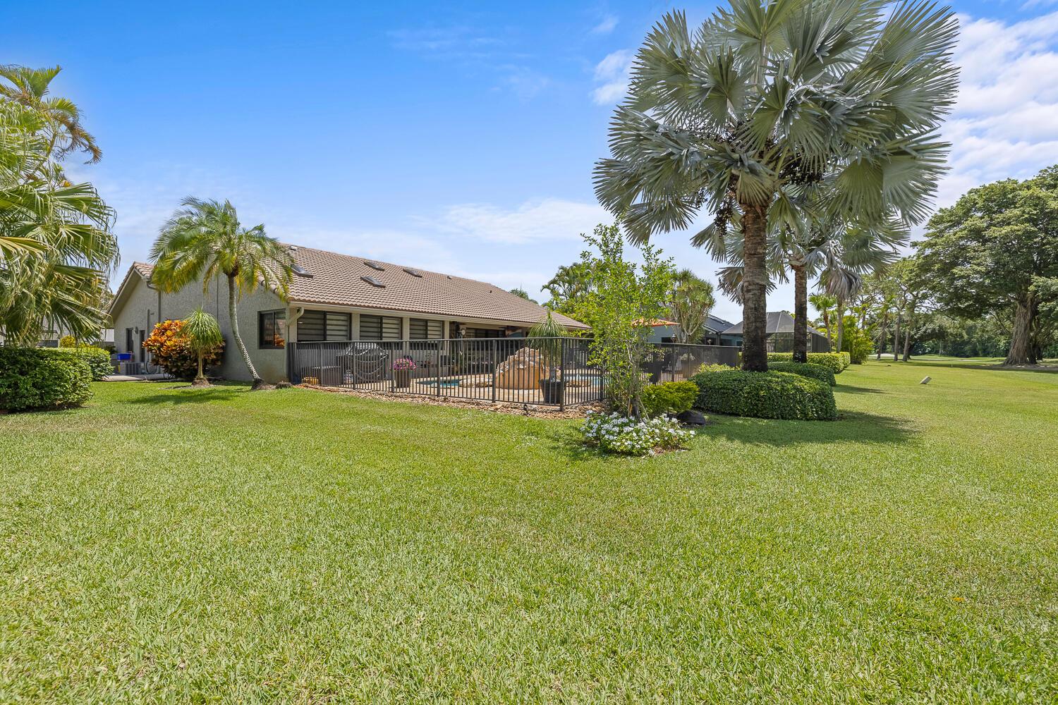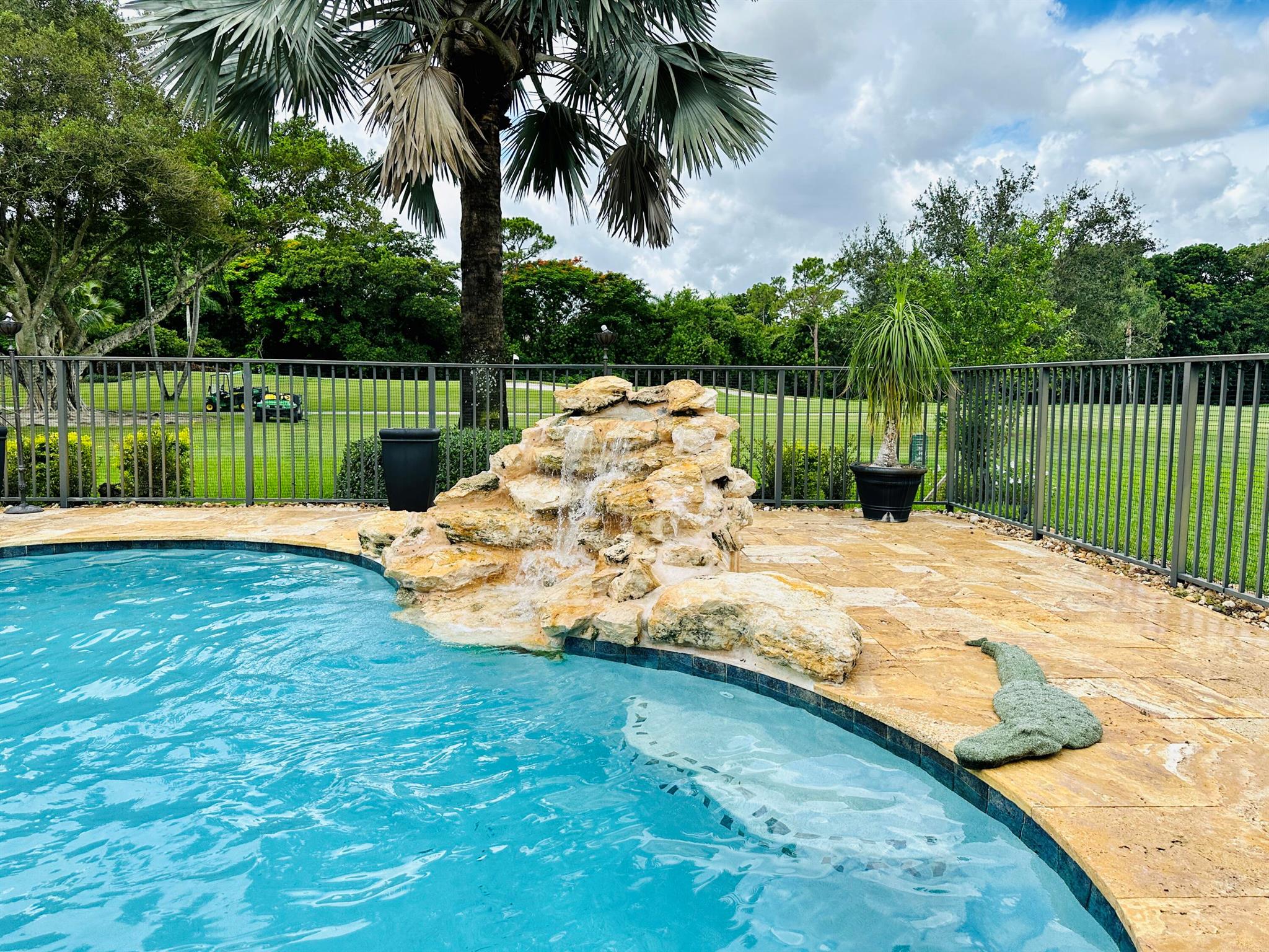 Price improvement! Welcome to Boca Woods Country Club - a hidden gemExceptional 3BR, 2.5 bath home, fully renovated, open concept floor plan with upgrades throughout. Over $250k in renovations including a chef's kitchen featuring quartzite countertops, custom cabinetry, and GE Profile appliances, complemented by a large main kitchen island and wet bar island.Featuring volume ceilings and skylights, and abundant natural light. This home is equipped with 2 zone AC, central vac, and hurricane impact windows and doors. Immaculately clean throughout.Backyard with a golf course view from the 15th hole. Rock waterfall pool and southern exposure.