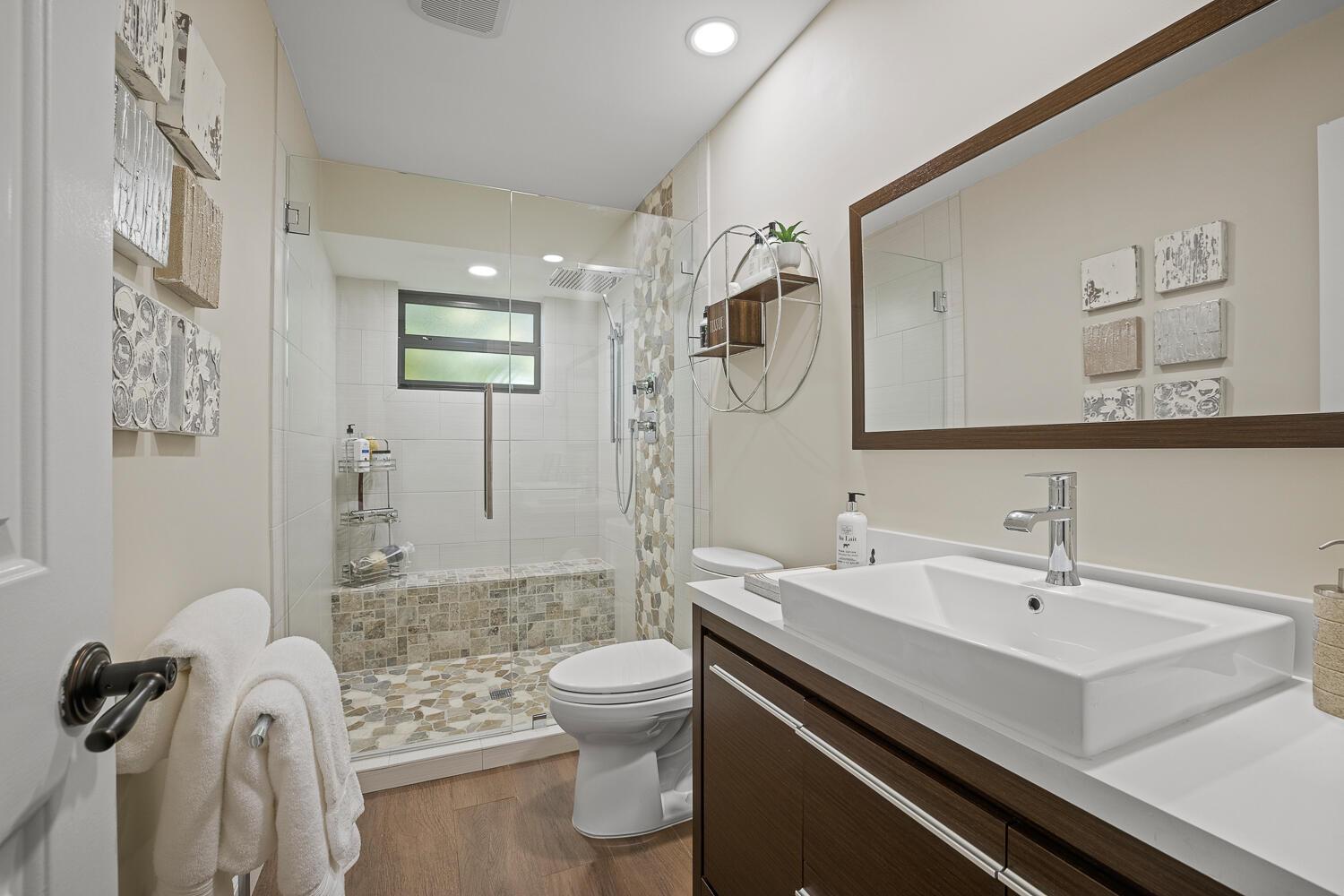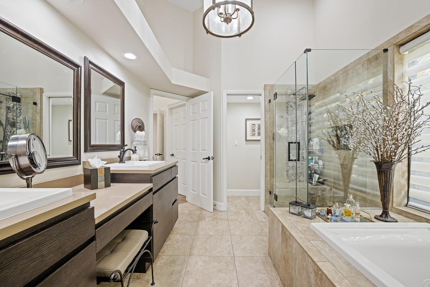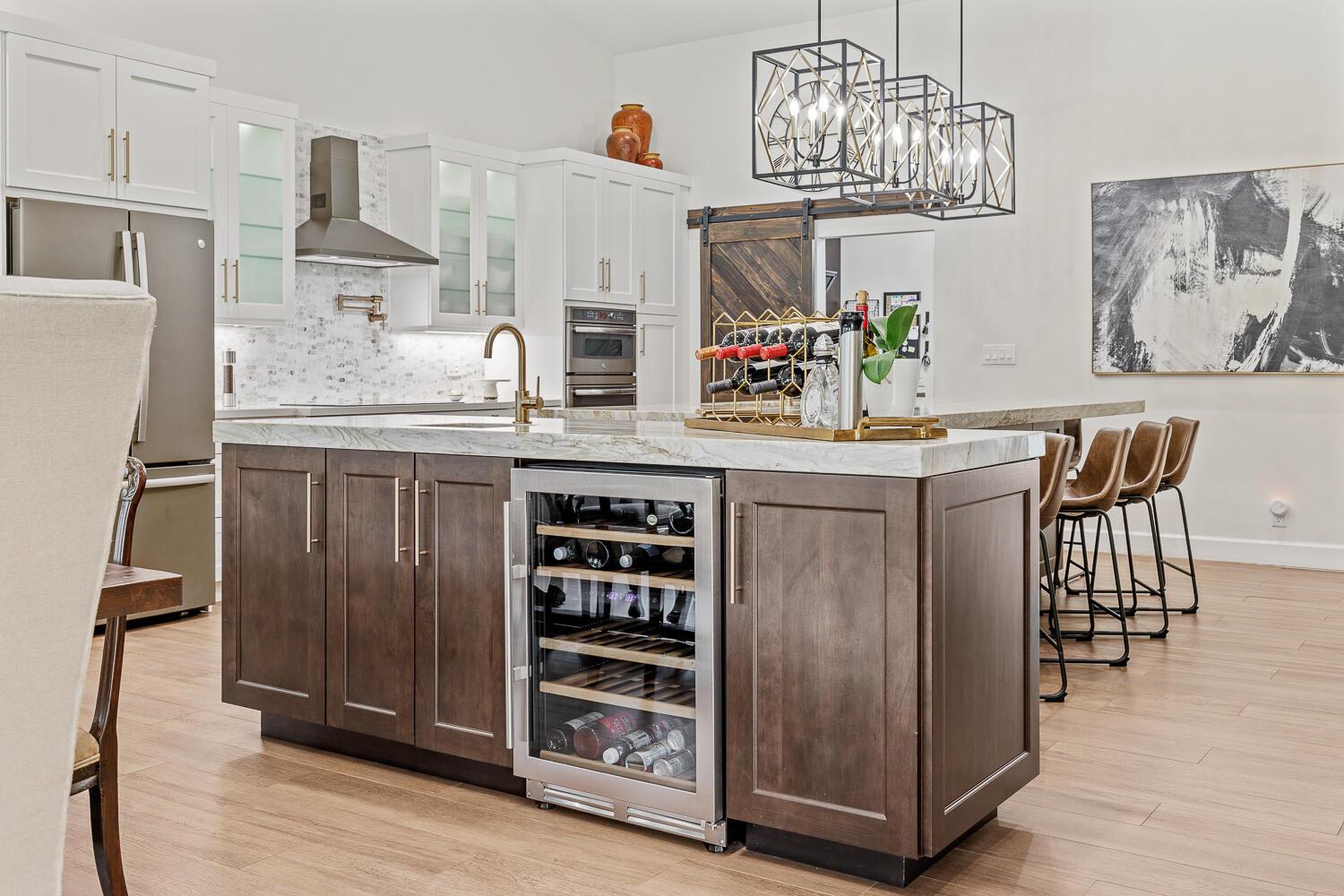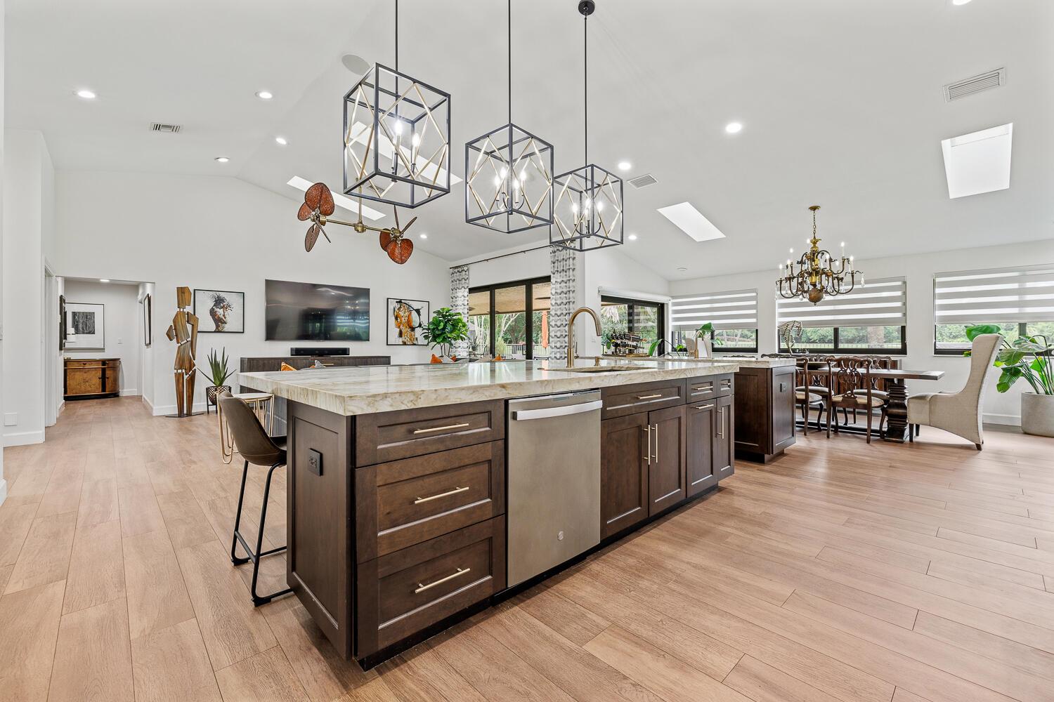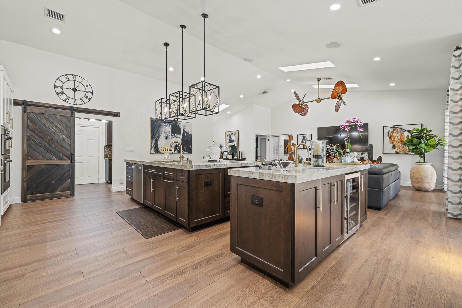 Price improvement! Welcome to Boca Woods Country Club - a hidden gemExceptional 3BR, 2.5 bath home, fully renovated, open concept floor plan with upgrades throughout. Over $250k in renovations including a chef's kitchen featuring quartzite countertops, custom cabinetry, and GE Profile appliances, complemented by a large main kitchen island and wet bar island.Featuring volume ceilings and skylights, and abundant natural light. This home is equipped with 2 zone AC, central vac, and hurricane impact windows and doors. Immaculately clean throughout.Backyard with a golf course view from the 15th hole. Rock waterfall pool and southern exposure.