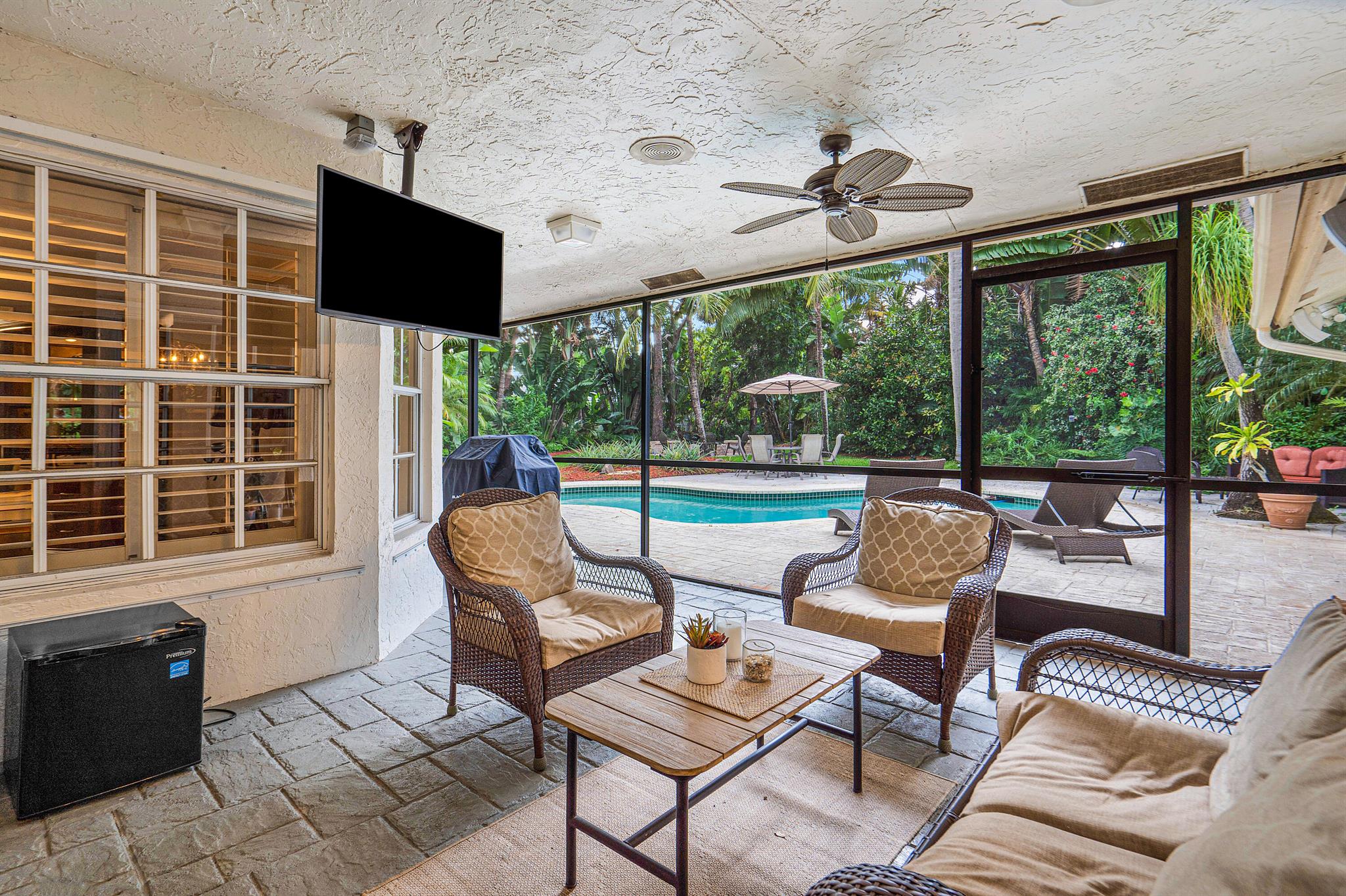SELLERS MOTIVATED. Centrally located in Boca Raton in the beautifully landscaped Colonnade community on just under 1/2 an acre private lot. This open layout, single story home features 4 Bedrooms, 2.5 baths, wood floors, granite kitchen countertops with plenty of space for cooking and a fireplace. Outside features a comfortable screened in patio area as well as a generous sized pool and HUGE yard filled with fruit trees, beautiful landscaping and a fire pit. This house has lots of indoor and outdoor spaces for entertaining.Located on a quiet street away from any major roads and a few blocks from Boca Tierra Park located within the community featuring basketball and tennis courts, playground, bike and walking trails, open field and covered picnic areas.The home is zoned for A rated