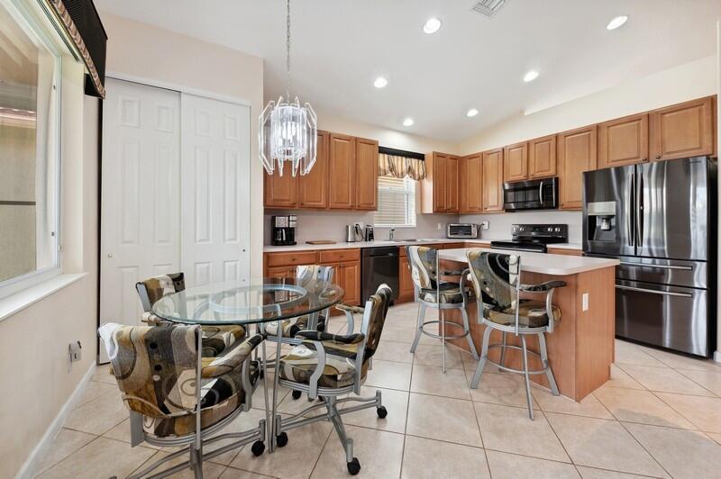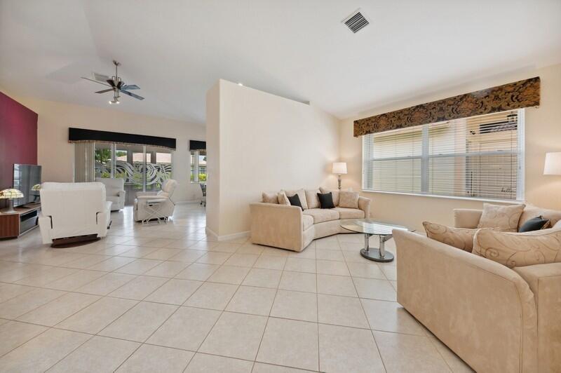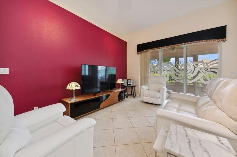 Beautifully maintained 3 bedrooms, 2 baths, 2-car garage home. Interior has high ceilings, tiled throughout on the diagonal. Kitchen has stainless steel appliances, 42'' cabinets, cook island, water purification system. Water softener system 2018, The AC 2013, hot water tank 2015, Accordion shutters installed 2018. Monthly fees also include Xfinity premium cable channels, ADT alarm system, LAN line, wi-fi internet. The clubhouse offers lots of activities & amenities, tennis courts , heated pools, an aquatrac pool, shuffleboard, pickle ball, hot tub, showers, sauna, workout , exercise, billiards, movie, library with Computer & much more. Community close to everything you may desire . All sizes and fees are approx. Pet friendly.