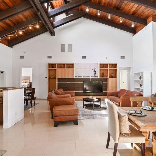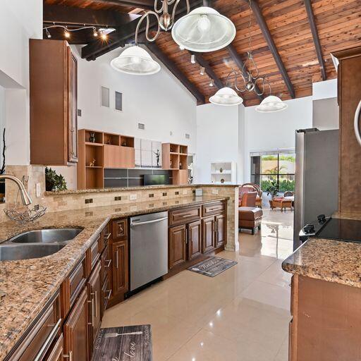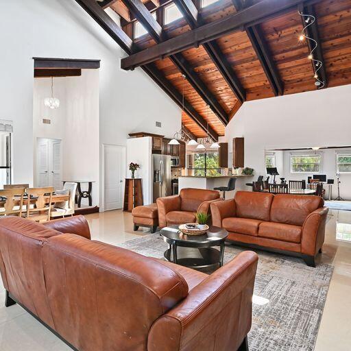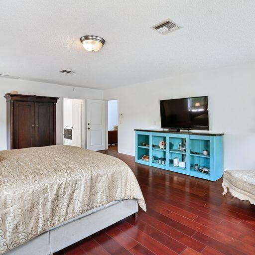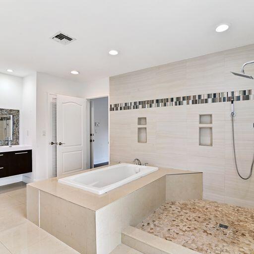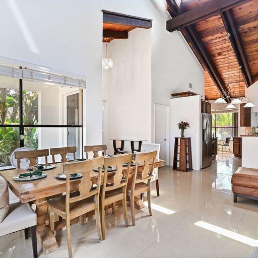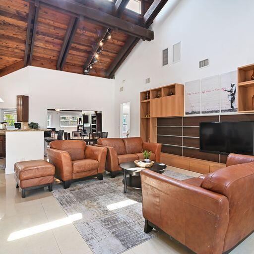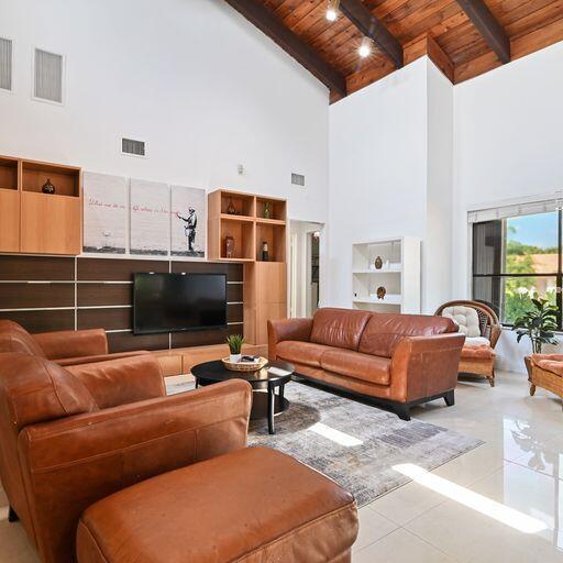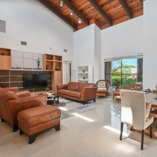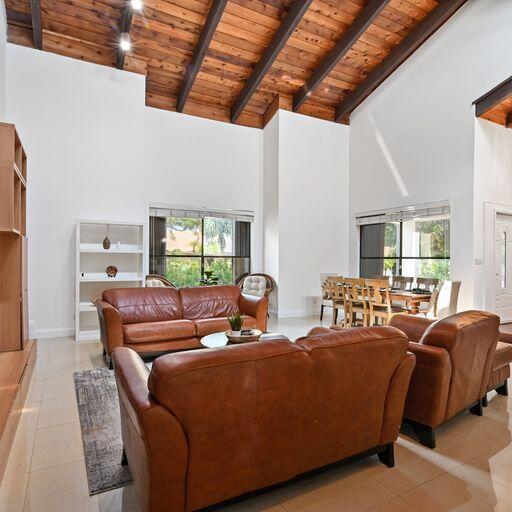 Rarely available property of 0.48 acres In the most desirable section of the Presidential Estate Community. This family home has a great room with soaring wooden ceilings with skylights that allow gorgeous lights in the living room. The kitchen is open to the great room and has an island, great for entertaining, while you are cooking for your family and friends. The family room is adjacent with more counter space. The kitchen has a pantry and an eat-in niche. Easy access to the swimming pool. The 3 split bedrooms with ensuite baths create a great privacy. The principal BR is huge and has great light. The bathroom is light and bright with a huge bathtub, a huge walk-in shower & modern double sink vanity. Closets galore. A drive way leads to a large parking area in front of the 2 car garage.