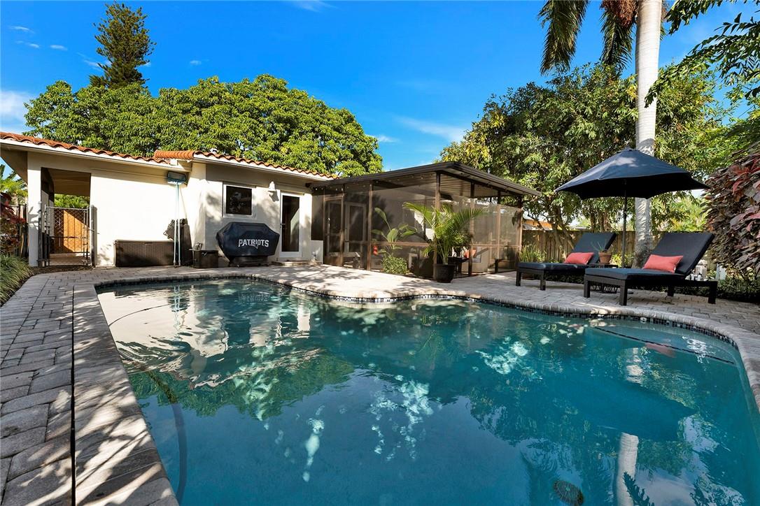 A TURNKEY..Conversation Piece-This Gorgeous 3 bed & 2 bath POOL home is located in one of best neighborhoods of East Fort Lauderdale near Poinsettia Heights. LOCATION LOCATION.. Centrally located.. Less than 2 to miles to Fort Lauderdale Beach, 1 mile to Las Olas, a few blocks south of Wilton Manors. Featuring exquisite landscape w/ Tall Trees and Smooth Lawns - inviting curb appeal, a private oasis backyard with a spacious screened-in porch, newer built POOL *SALT*, high impact windows/doors thru-out, NEW A/C, OPEN kitchen w/ custom kitchen cabinetry and alluring granite counter-tops, gorgeous stone floor tiles , interior doors are SOLID WOOD, updated baths, fantastic open layout distribution, indoor laundry room, Great for AIRBNB opportunity, furnishings can convey with sale, MUST SEE