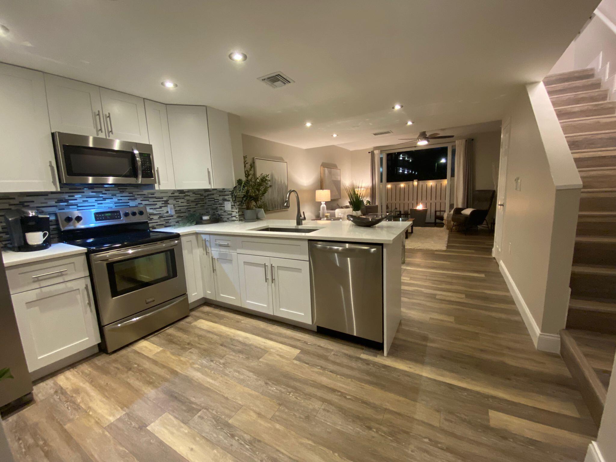 RARELY AVAILABLE 2-BR/2.5-BA townhouse in GATED Intracoastal-waterfront enclave of ''Boca Quay.'' This fully remodeled & TURNKEY FURNISHED home will not disappoint! No expense has been spared in upgrading every detail, making it truly a haven for discerning buyers.Step inside this cleanly designed/modern townhouse & be greeted by the warm glow of LED lights throughout. Recessed lighting in the kitchen and dining areas creates a cozy ambiance, featuring custom, white soft-close cabinets & drawers that offer ample storage space w/quarter-inch white quartz countertops. High-end Whirlpool stainless steel appliances, including an 8-gauge farmhouse under-mount sink & a single Delta faucet with a sprayer, make cooking a delight. Waterproof vinyl 'wood plank' floors throughout. (MORE!)