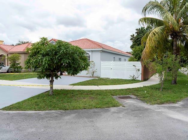 Single family home in the heart of Hialeah. Conveniently located on the corner of a dead end street. Quiet residential neighborhood. Schools and hospitals nearby. This one story home features 3 bedrooms and 2 full baths. Interior and exterior of the house were just freshly painted. Tile floors throughout the property. The kitchen has a lot of natural light, sliding glass doors to the backyard, features stainless steel appliances and plenty of cabinets for storage. Master bedroom has en-suite bathroom with shower, large vanity, and storage space. Accordion shutters on windows. The backyard is spacious and fenced. Enjoy the mature mango tree! Washer and dryer located underneath the extended patio roof. Plenty of space to park your cars in the driveway.