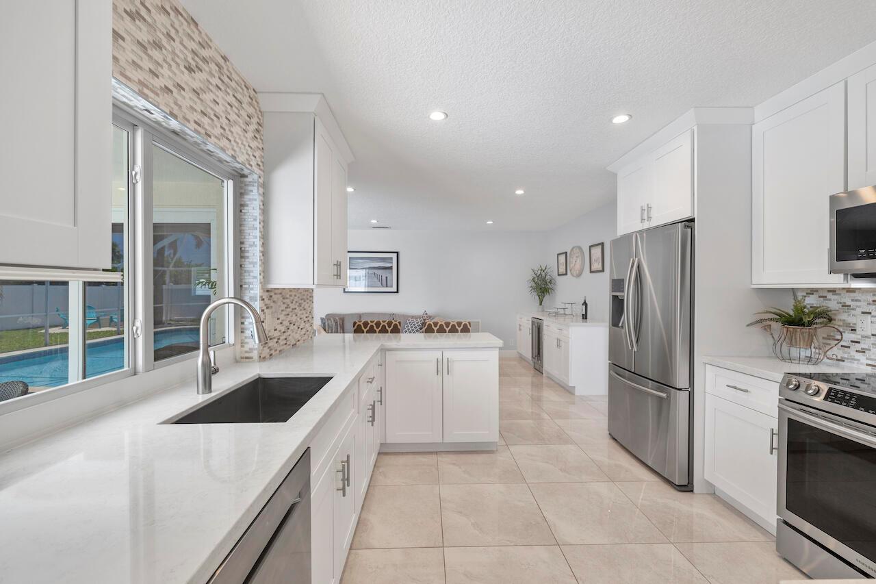 Looking for a home that needs nothing? HURRY, THIS IS IT! Just move right in and start enjoying all this beautiful property has to offer with upgrades galore! Including a gorgeous, modern interior with a white kitchen, stainless steel appliances and is open to the family room with a custom wine bar. The very spacious primary bedroom includes a fabulous walk-in closet and hotel-like ensuite bath. The additional bedrooms also feature nice closet spaces including a walk-in closet in the 3rd bedroom. The oversized guest bath gives direct access to the abundant screened patio with a beautiful & refreshing heated pool. The fully fenced large backyard also features a custom firepit for making S'mores! The home features hurricane windows, sliders, newer roof (2018) and SO MUCH MORE! NO HOA! HURRY!