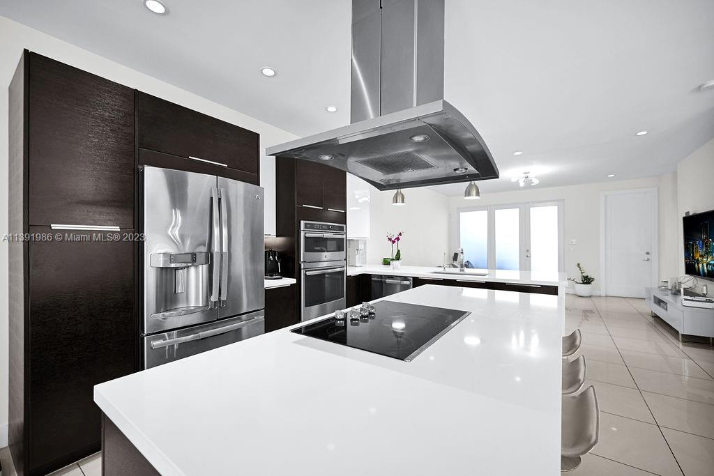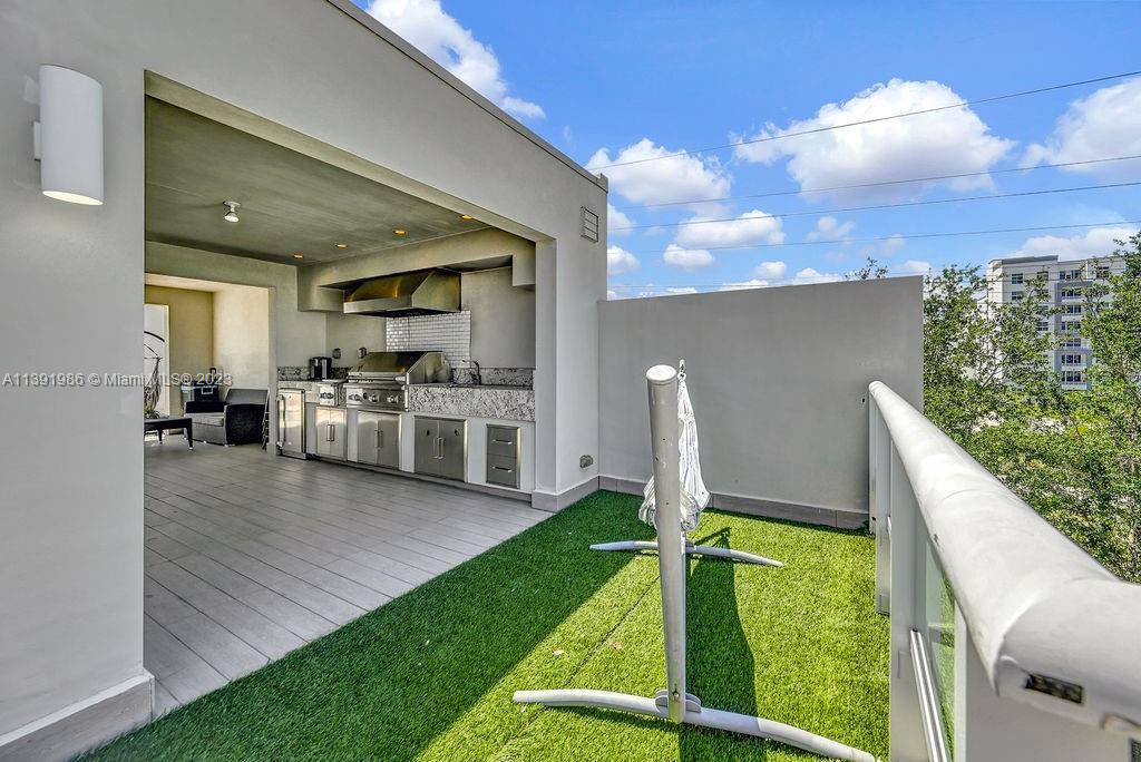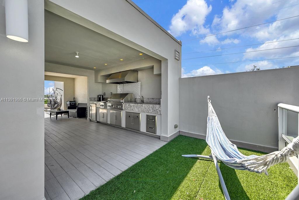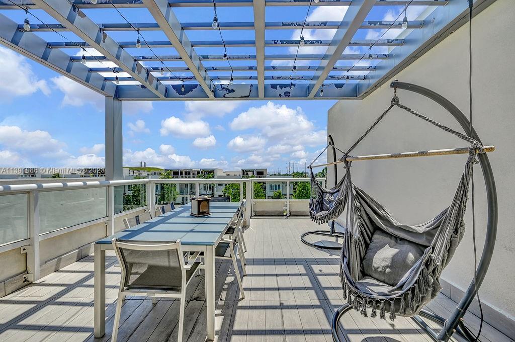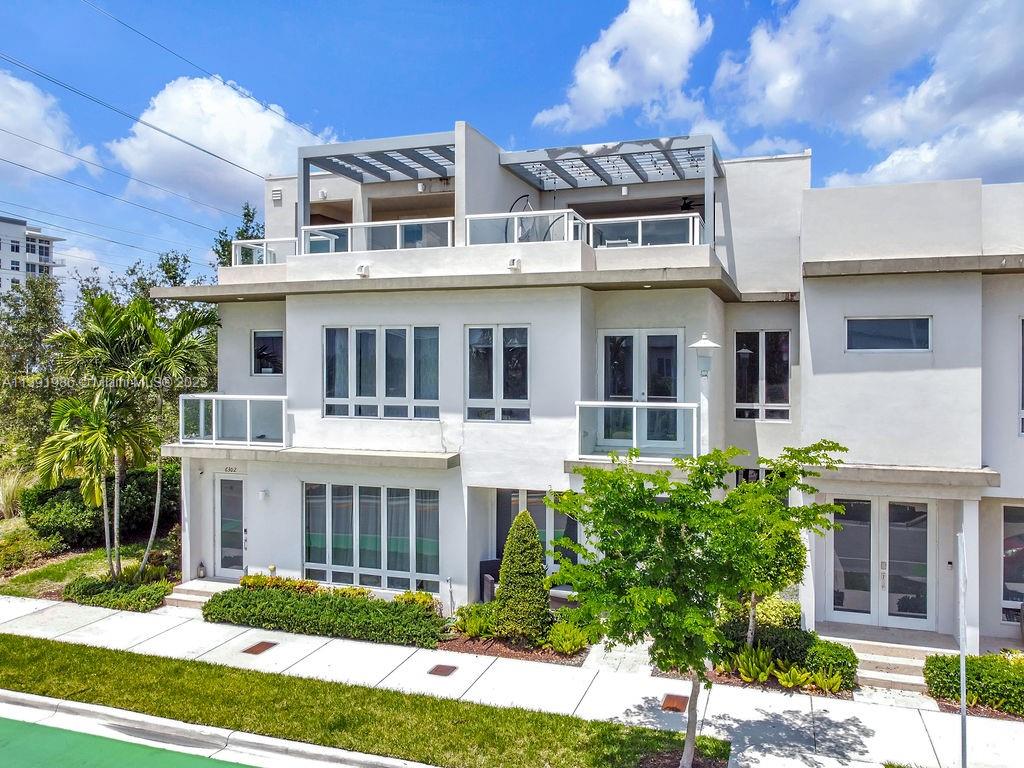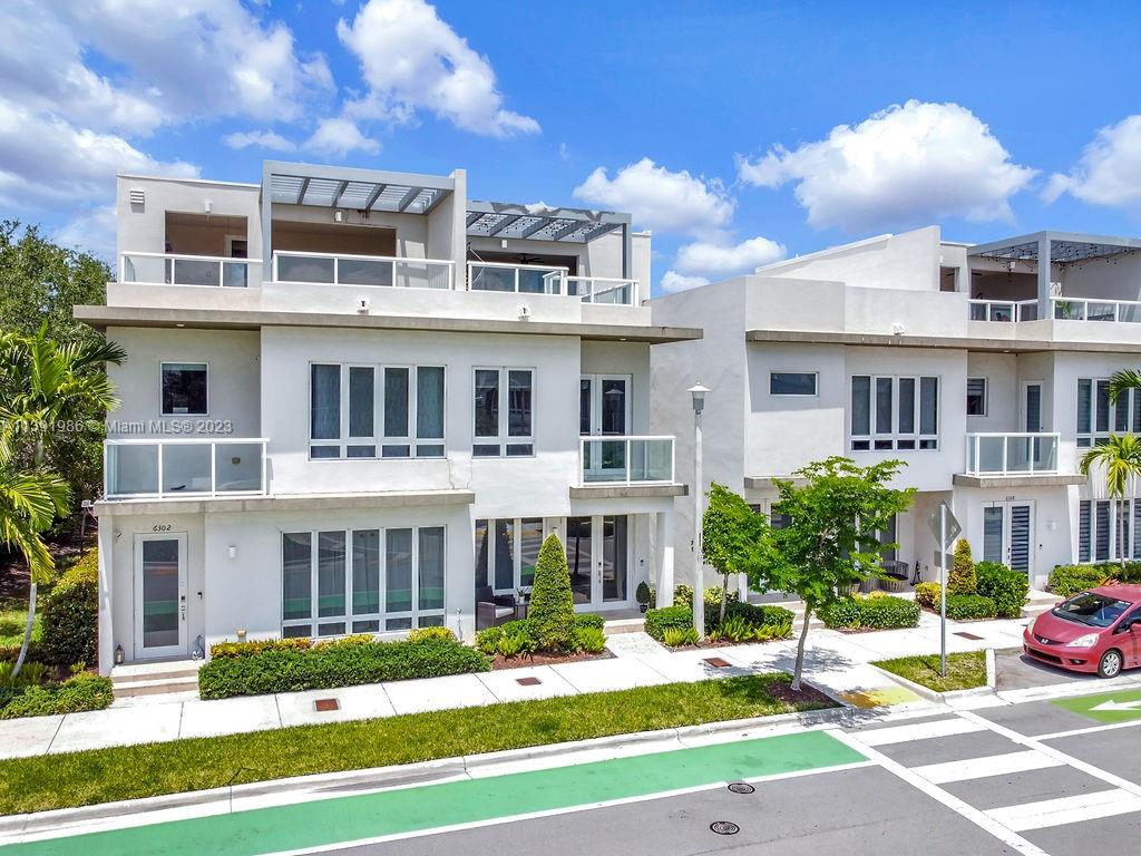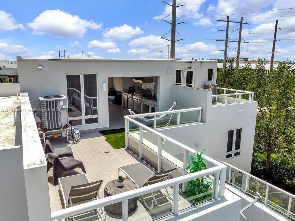 BACK ON MARKET! Modern Townhome at Landmark Doral. Amazing location located right in front of a beautiful walking park! This trip-level unit has modern finishes featuring an open kitchen at entry level and a beautiful rooftop terrace with an outdoor kitchen and lounge area perfect for entertaining!