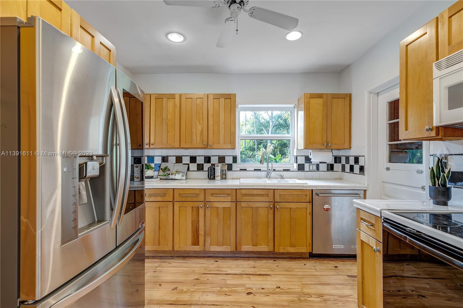 AMAZING OPPORTUNITY IN HIGHLY SOUGHT-AFTER MIAMI SHORES NEIGHBORHOOD! Step into the charm and elegance of a bygone era with this stunning Art Deco gem, offering room for expansion and a pool. This property is an ideal start-up home, with the best proximity to downtown Miami Shores, its' boutiques, restaurants & parks! The home features 2 beds, 1 bath, a Florida room & an oversized gated backyard, and a covered garage. The property boasts fruit trees, a working fireplace, and impeccably preserved original wood floors with artistic corner designs. The Art Deco molding accents and original kaleidoscope ceramic floors in the covered terrace/Florida room add a unique touch. With turn-key condition and vacancy, viewing this unit is effortless.