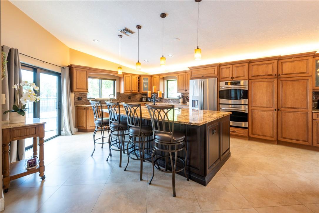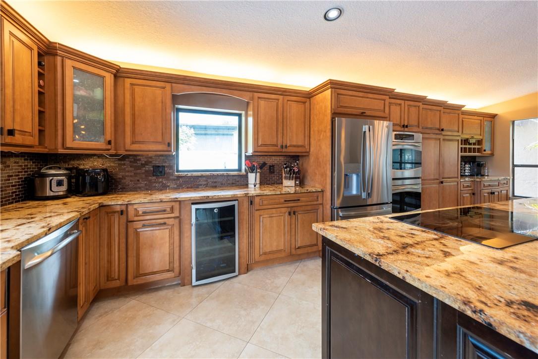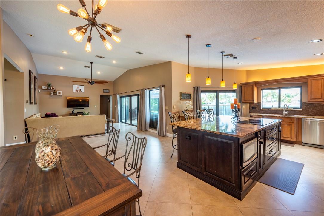 Enjoy magnificent sunsets from this four bedroom 2 1/2 bath, waterfront, pool home in Cypress Glen. Expansive open floor plan with oversized kitchen. Large custom Island, bar area with wine fridge double ovens. Impact windows across the back allowing wonderful views of the pool area and lake beyond.