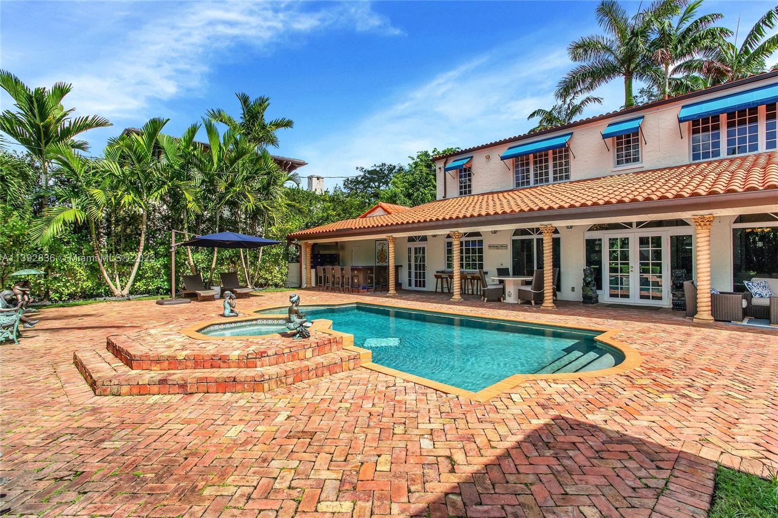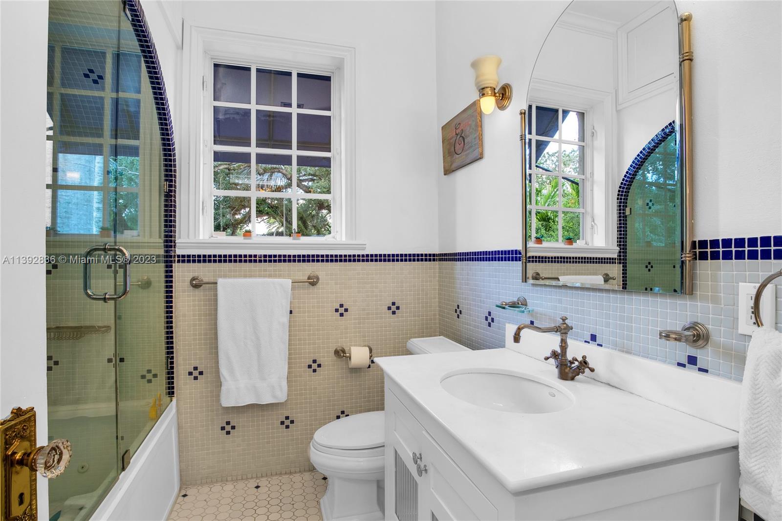 Majestic Mediterranean mansion on Coral Way. Grand foyer leads to large gracious spaces; living room w/fireplace,library/office w/gas fireplace, dining room, and family room w/bar. Main floor features guest room and staff room, each w/bath, cook's kitchen, breakfast room, and wine cellar. Impact glass French doors open to wide covered terrace w/entertaining area. On the 2nd floor: primary bedroom with massive bath and 2 walk-in closets; two other bedrooms each with private bath. Home was renovated in 2006 preserving the Old Spanish look and charm w/wood, marble, and tile floors, beamed ceilings and original stained glass. Pool area features a cabana w/bath, steam room, and a 2nd wine cellar (possible guest cottage). Impact glass throughout, roof and ACs new in 2022.
