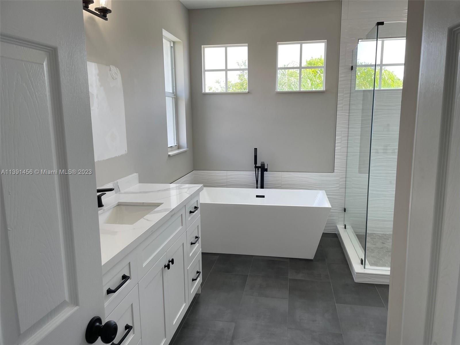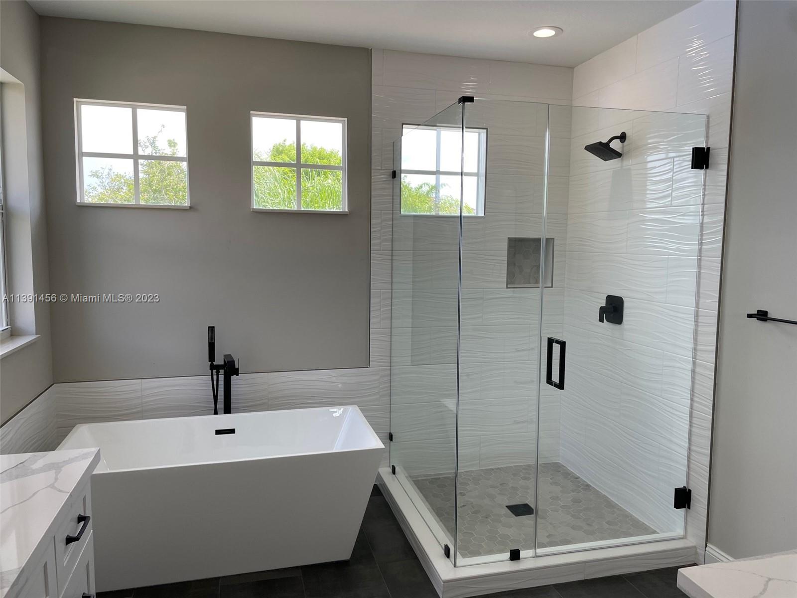 Looking for a beautiful and completely renovated 2-story home in a gated community in central Miramar on the water? This 4 bedroom, plus office, and 3 full bathroom home has it all. From the tree lined streets to the community clubhouse. This home features all new wood kitchen and bathroom cabinets with quartz counters, brand new SS appliances throughout, new floor and wall tile in the bathrooms with new toilets and tubs, new HVAC systems, new luxury vinyl flooring and baseboards, completely painted inside and outside, new garage door openers, new led lighting, and new landscaping. One of the bedrooms is even located downstairs. From the rear covered patio, you can enjoy the views of the waterfront backyard with a huge mature oak tree to give plenty of shade. Come see this one today!