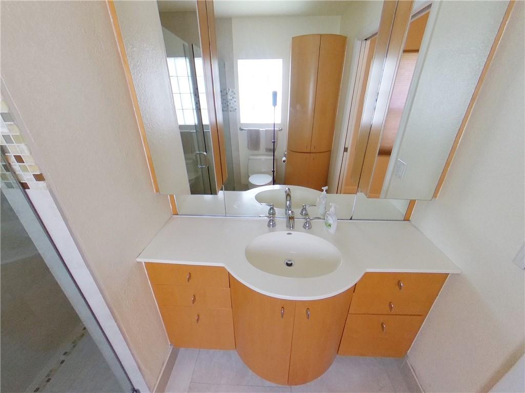The home sits on one of the largest pie shaped lots and is in a cul-de-sac. The interior of the home has a large living area great room concept with volume ceilings and features a split bedroom plan with the master bedroom on the east side of the home and the other three bedrooms are located on the other side of the living area. The interior has knockdown ceilings and fresh paint. The kitchen features all stainless-steel KitchenAid appliances. Granite countertops with and custom design dimensional backsplash tiles with under-cabinet lighting. The large breakfast bar can accommodate four bar stools. Bathrooms were designed with custom cabinets designs by Vanico Maranyx cabinets. The master bedroom has 24-inch Porcelain tile throughout and flows into the bath and oversize shower.