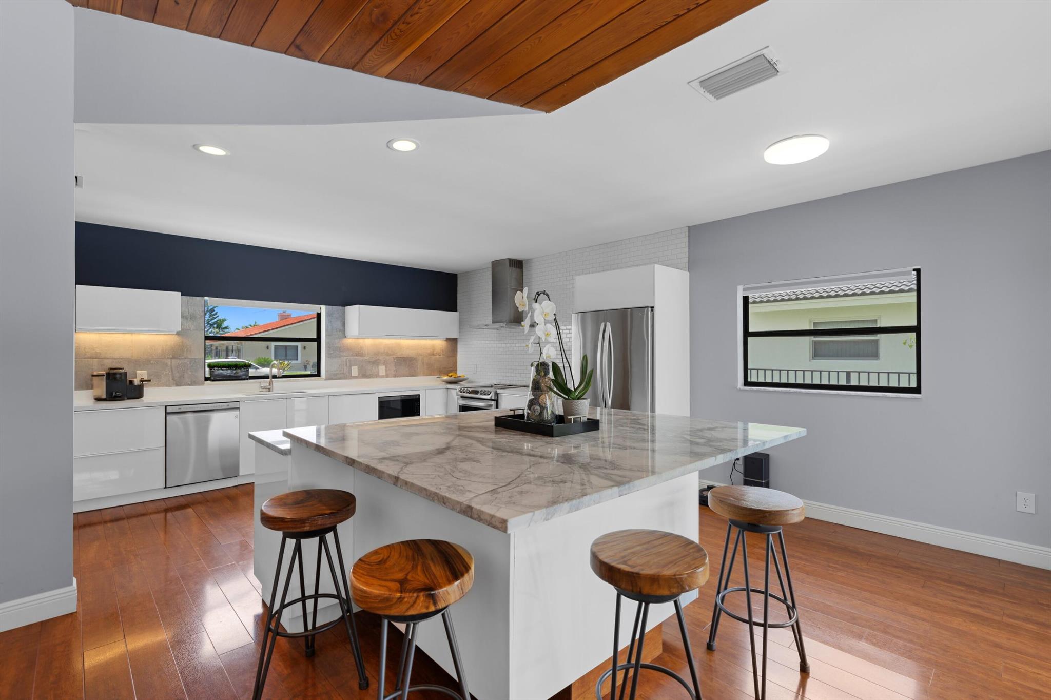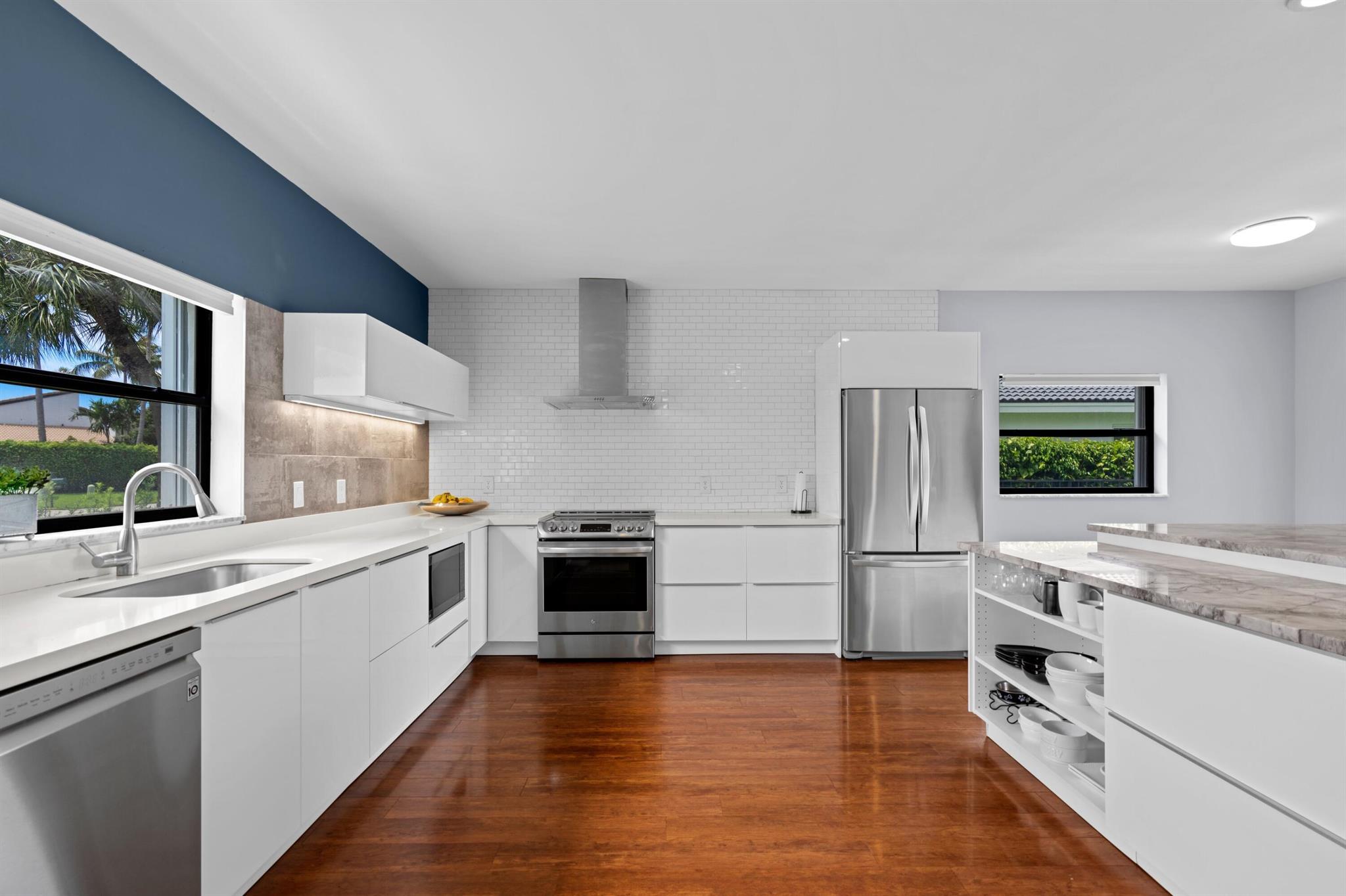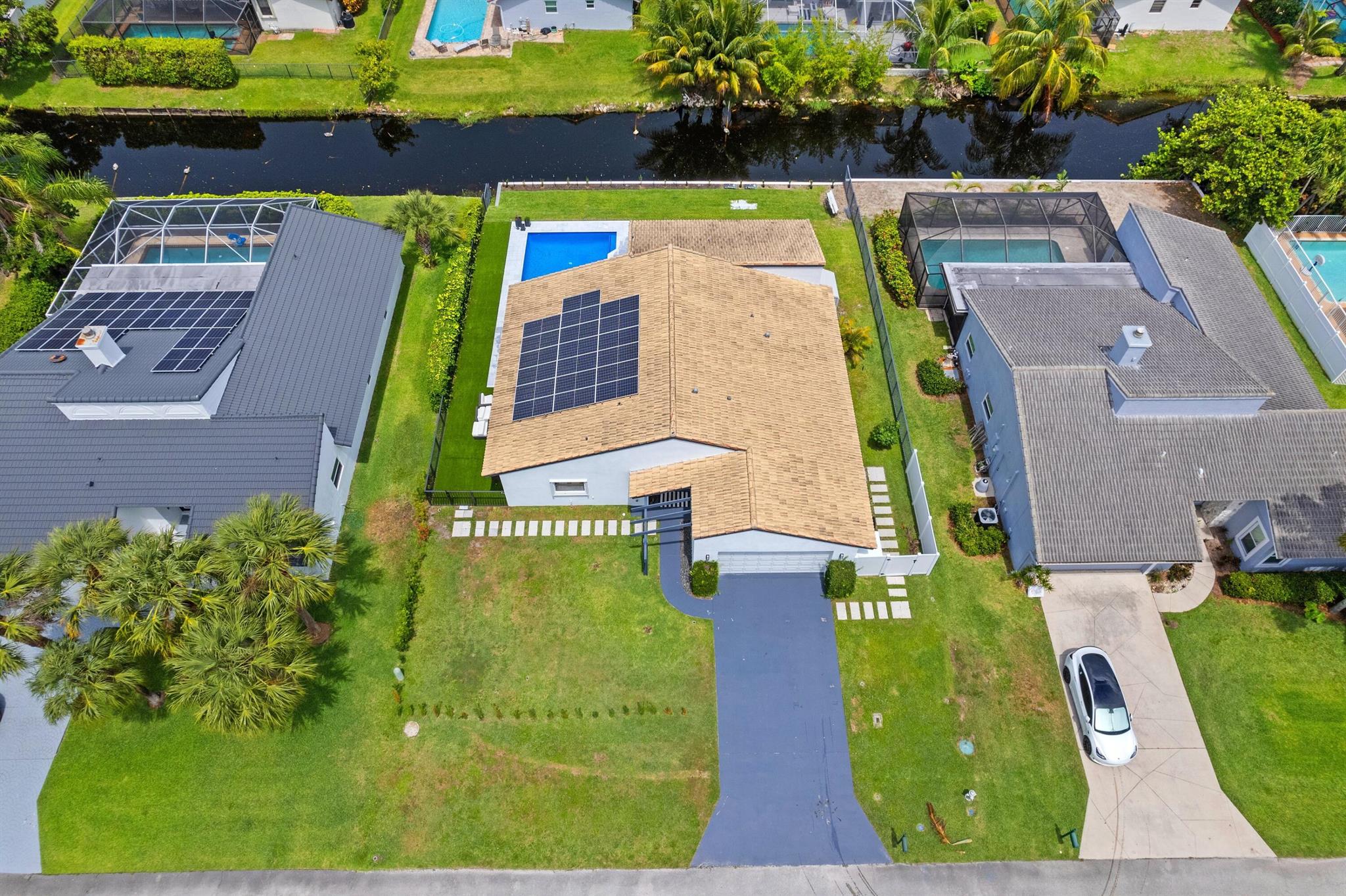 WOW! Stunning Waterfront Single-Family Home in East Boca Raton's Most Sought-After Gated Neighborhood Boca Lake Estates! $200k in Quality UPGRADES! Bright Open Floor Plan | Dramatic Vaulted Ceilings with Custom Wood Accents | Recessed Lights | Wood Floors. Impressive Eat-In Gourmet Kitchen with Quartz Countertops, Tile Backsplash, Oversized Island & Bar, Custom White Cabinets, Pantry, New S/S Appliances! Beautiful Master Bedroom with Waterfront Views, 3 Walk-In Clothes | Renovated Ensuite with Dual Sink Vanity & Huge Glass Shower! Quiet Lush Tropical Backyard with Turf Grass | Tranquil Canal Views | 2023 Custom Designed Heated Pool & Marble Patio. Tesla Power Wall & Solar System! New Seawall! Smart AC! 2022 Exterior Paint! A+ Schools! Minutes to Beach, FAU, Mizner Park, Royal Palm Plaza!