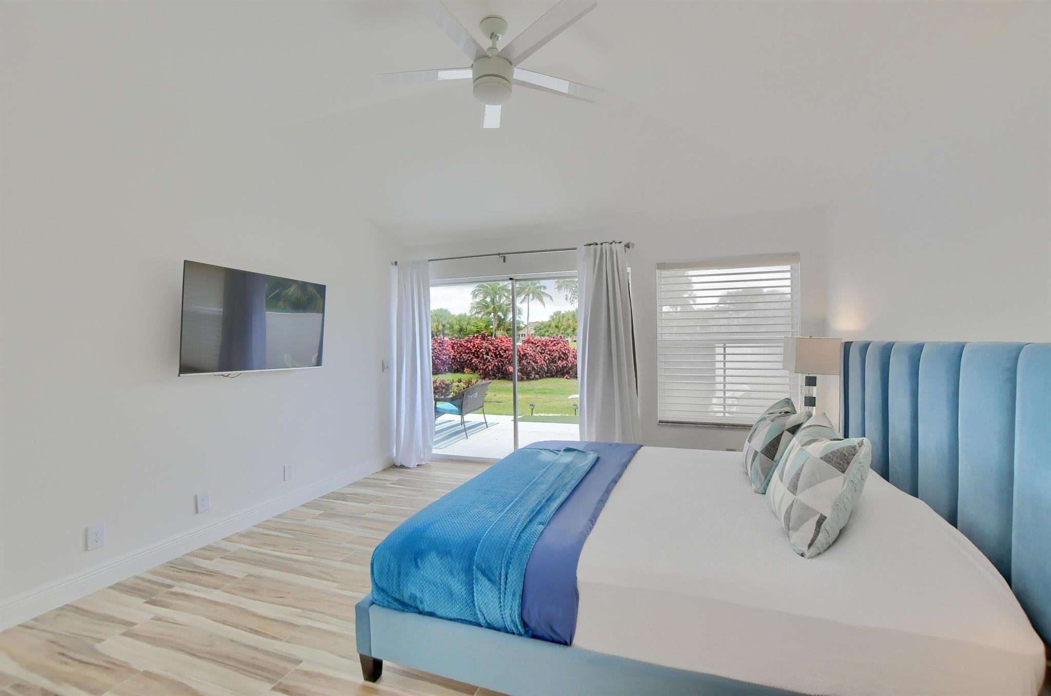 This contemporary one-story townhouse is sold furnished, features 3 beds, 2.5 baths, newly renovated & decorated with modern details including smooth walls, porcelain tile floors, quartz counters, & recessed lights. The primary bedroom features a generous walk in closet, direct access to back patio & tremendous views of the golf course. Primary bath has floor to ceiling porcelain tiles, dual sinks with quartz counters & vanity lights. The light filled living room flows into the kitchen with new stainless appliances, white cabinets & fabulous center island perfect for entertaining. Enjoy unobstructed golf views while sipping your morning coffee! Brand new AC, refrigerator, oven, microwave, washer &