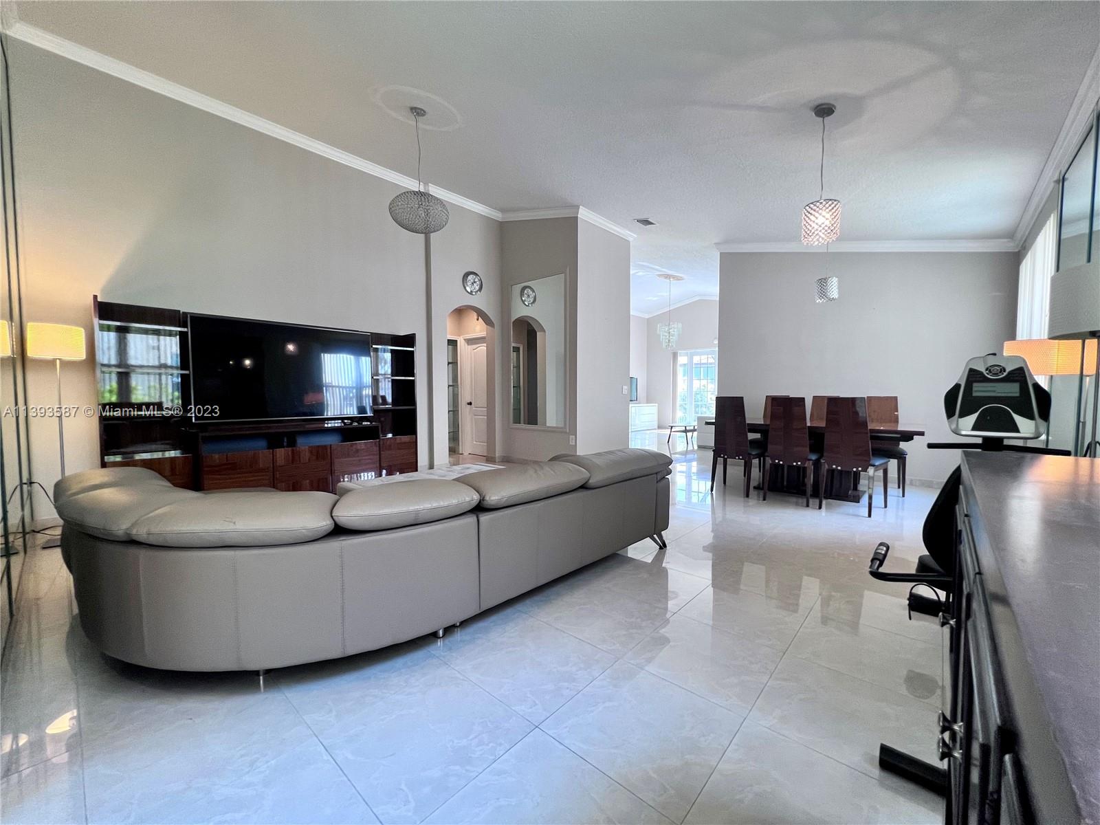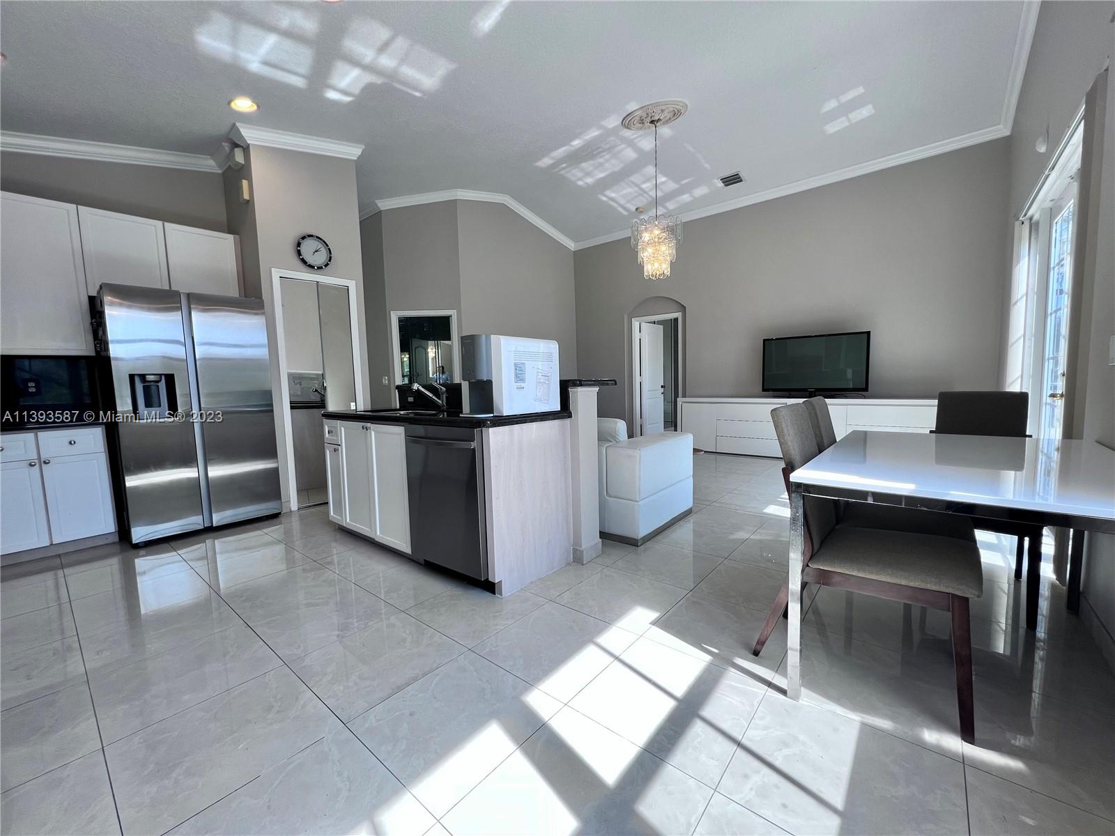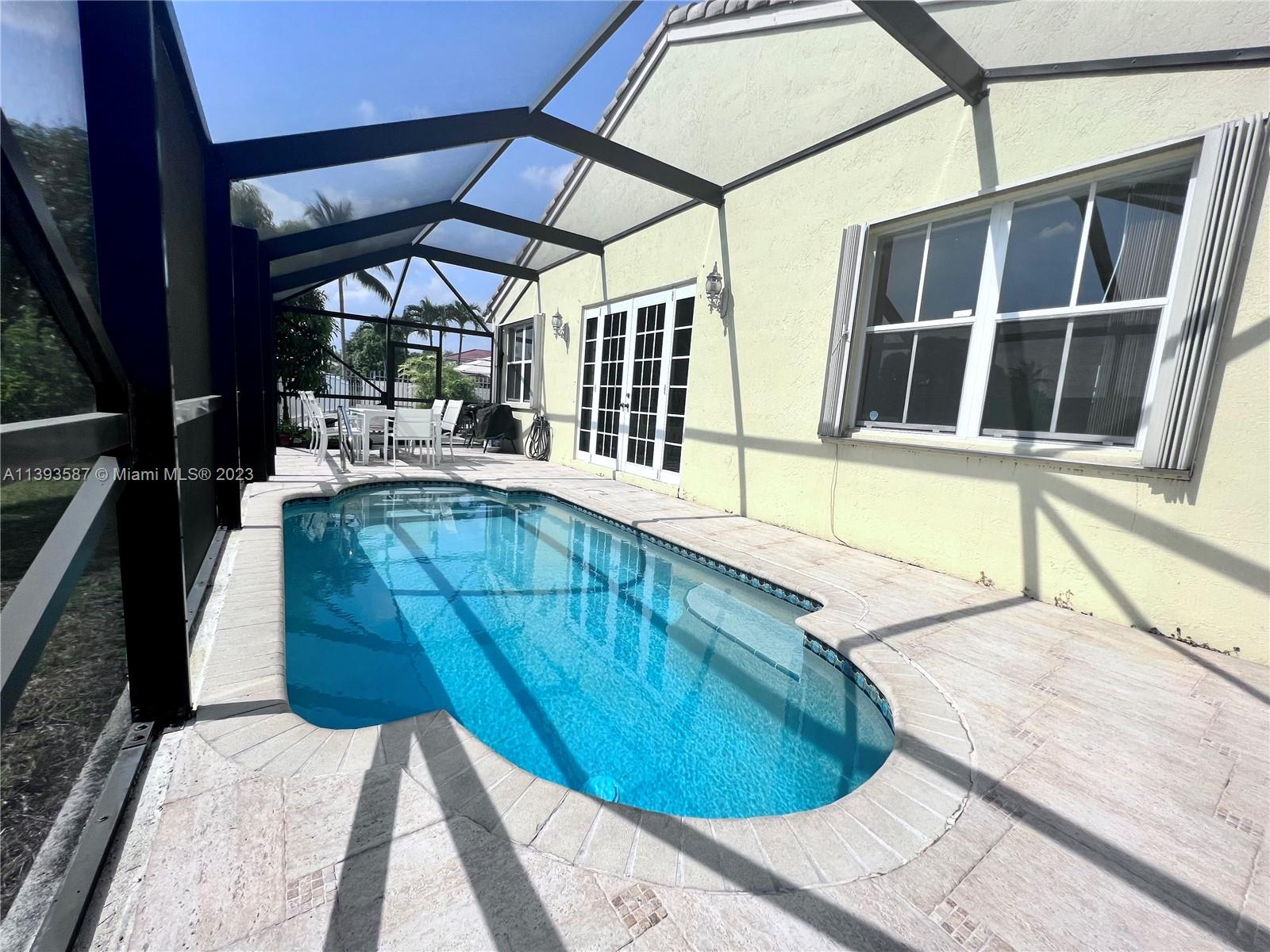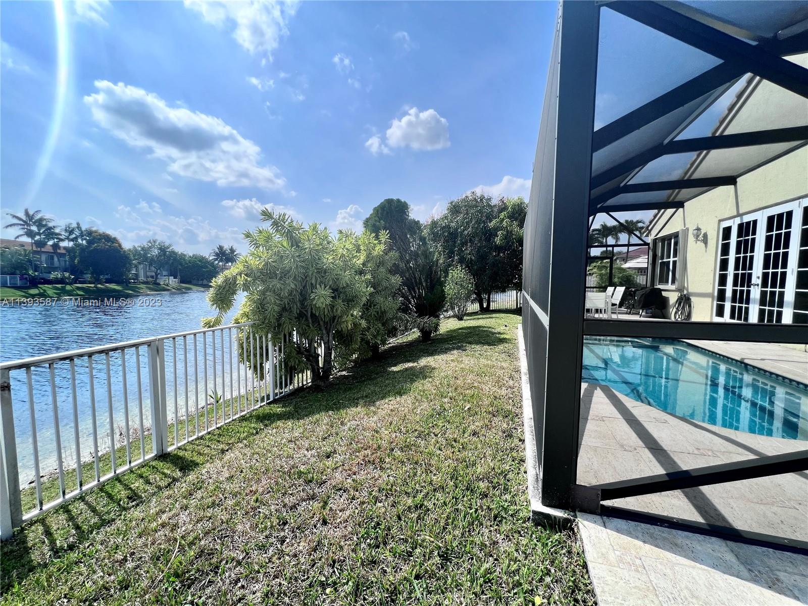 This spacious 3-bedroom, 2.5-bathroom one-story home layout, comes with additional office space for remote workers, beautiful lake views, and a landscaped pool area. The kitchen features elegant granite countertops and stainless steel appliances, while porcelain and tile floors complement any decor. Enjoy ultimate privacy within a gated community with a desirable floor plan separating the master bedroom from the other three. With a 2-car garage, newer washer/dryer, hurricane-proof patio door, and window shutters, this property offers convenience and safety. This home is close to I-75 and Turnpike with nearby places such as Home Depot, Pembroke Lakes Mall, Publix, Trader's Joe, The Shops at Pembroke Gardens, Walmart Supercenter, Whole Foods, Memorial Hospital, and CB Smith Park.
