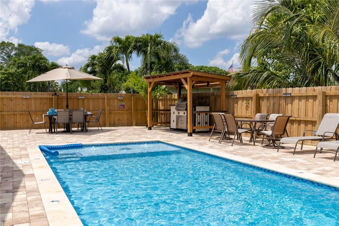 Back on the market due to buyer's health issues. Gorgeous Pool home with 3 bedrooms and 2 bathrooms nicely renovated. Cathedral ceiling with fans. Brand new pool with heater and gazebo. Roof is 3 years old. Newer A/C and water heater. Fully fenced. Putting green on the side of the house, Low maintenance landscape, big driveway, Full Automation on A/C and mini split, pool equipment, outdoor lights, Irrigation, Landscape lights, 4 ring cameras, ring door bell, smart lock on 3 doors. Newer appliances in kitchen, Washer/Dryer. Fence yard, front screen porch, wood deck & patio in back yard, sprinkler. Close to school and shopping. Garage was converted into a bedroom. Easy to revert back to garage, no permanent work. Currently running as a permitted airbnb.