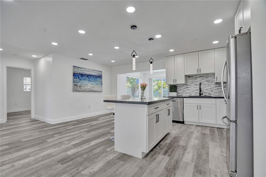 Introducing this beautifully renovated 3-bedroom, 2-bath home that boasts a stunning blend of modern upgrades and timeless charm. Step inside and be captivated by the exquisite attention to detail throughout. The spacious kitchen has been transformed with new flooring, quartz countertops, and top-of-the-line stainless steel appliances. The open concept design seamlessly connects the kitchen to the inviting living area, making it perfect for entertaining guests or spending quality time with family. The abundance of natural light fills the space, highlighting the fresh paint and stylish fixtures. With its remarkable upgrades, including the stunning kitchen, new roof, and luxurious bathrooms, this home offers the perfect combination of comfort, style, and functionality.