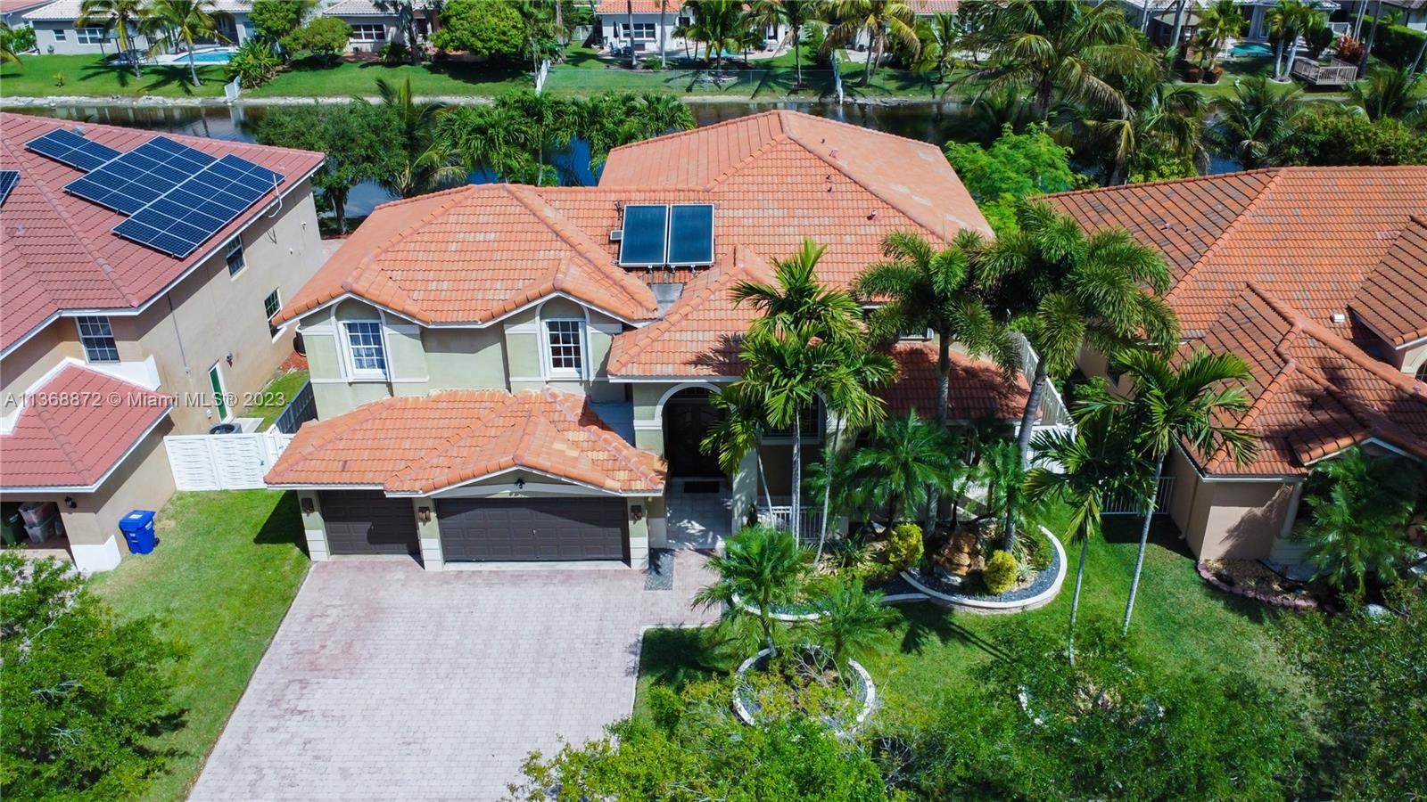 Custom 5 bd rm, 3.5 bth, 3 car garage home with all the upgrades in sought out, gated community @ Spring Valley Estates. Thoughtfully constructed with an open concept - large chef's kitchen, dbl islands, built in SS appliances, inclusive wine bar that opens to the living room. Expansive master suite encompasses an elaborate custom walk in closet, mstr bth w/ open walk in shower. 3 additional bd rms upstairs with custom closets, 1 in-law suite down stairs. Tile floors downstairs, bamboo floors upstairs. New hurricane rated custom front dbl doors, crown molding, custom window treatment, accordion shutters throughout, . 3 AC units, solar water heater, & laundry rm. Open backyard oasis, w/ heated pool, cabana bathroom, wide canal water views. New lush landscaping w/ lighting front & backyard.