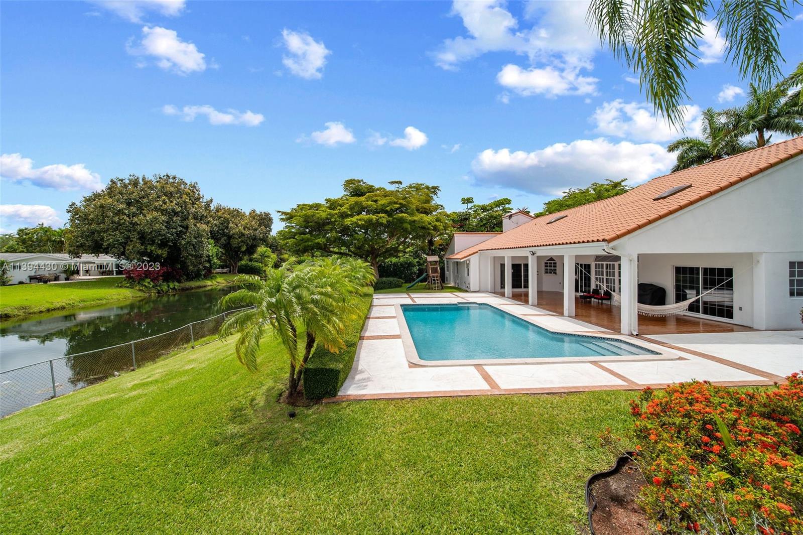 Experience luxury in this rare find nestled in a Pinecrest's quiet cul-de-sac. This waterfront home boasts natural light, wood floors, family room w/vaulted ceiling & bar, plus a den/office. Remodeled kitchen w/ a large cooking island and breakfast nook, modernized bathrooms, a newer roof (2016), new electric panels and wiring (2021), LED lights and modern switches (2022). Popcorn ceiling has been removed, outdoor and pool lighting installed, lateral and back security gates for added security (2022), Pool resurfaced (2012). Built-in desks have been added to the kids' rooms and office (2023). Enjoy spectacular views of the pool and canal from throughout the home. Conveniently located w/excellent public/private schools. Close to shops, supermarkets & wonderful parks.