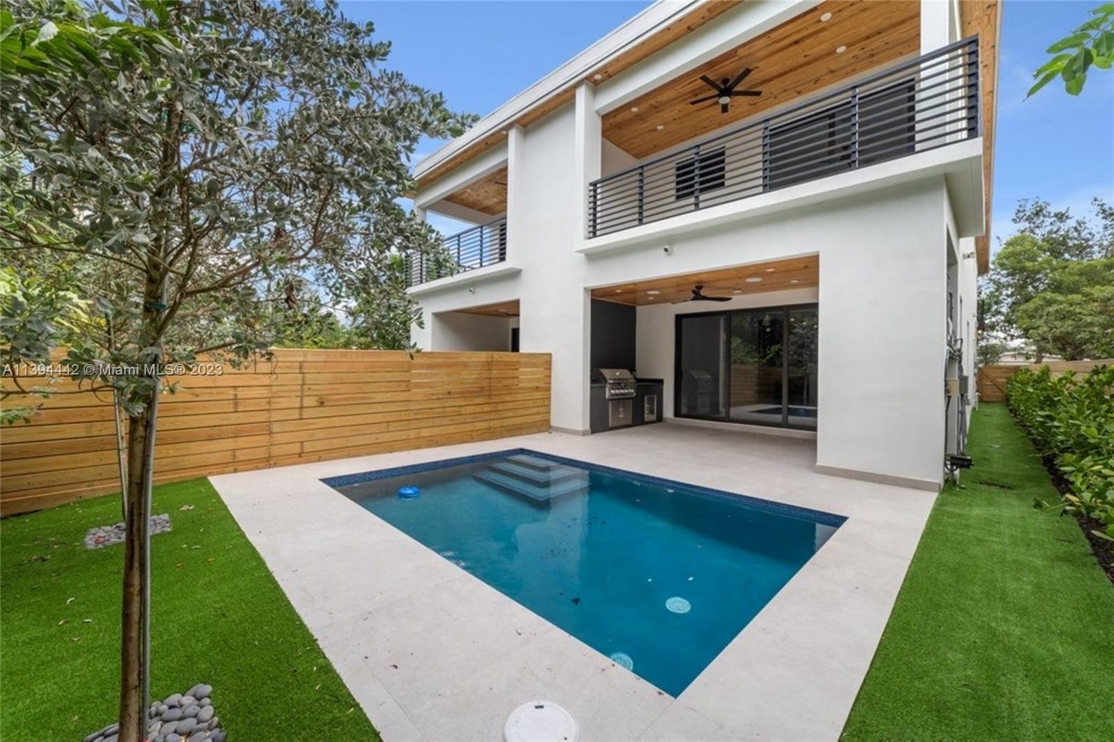 Located in the heart of Fort Lauderdale. This townhouse offers luxury in every way possible from the beautiful exterior of the units to a spacious living room, high-end showers, a private pool, and much more features. Each unit is 3 bedrooms and 3 1/2 bathrooms. Each unit comes fully equipped with security cameras, and surround sound speakers throughout the main areas, including your master bedroom. Beautiful Large pool and green area, a high-end summer kitchen to entertain your guest outside, built-in closets in all the bedrooms, beautiful finishes designed by the developer, wallpaper/accent walls.