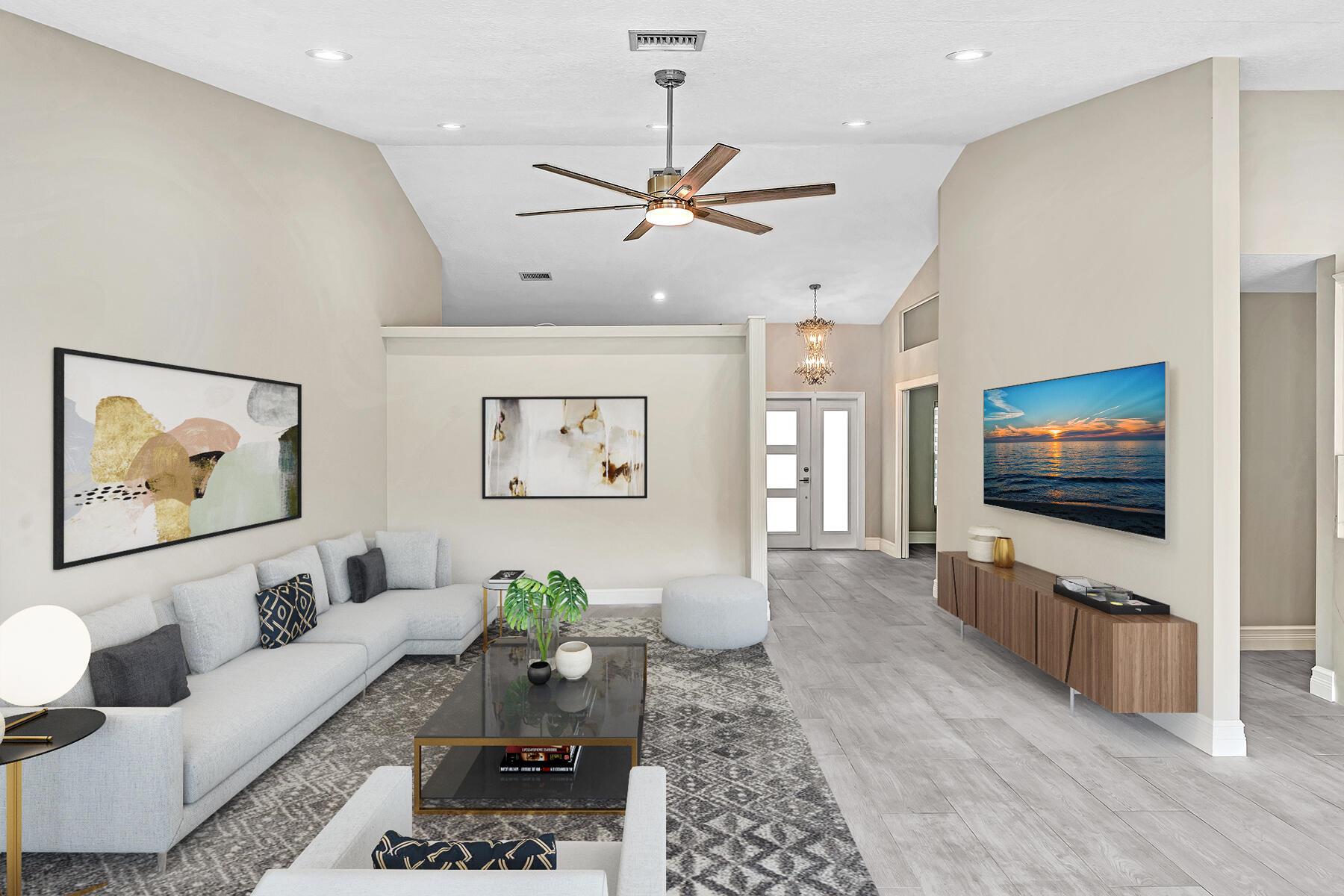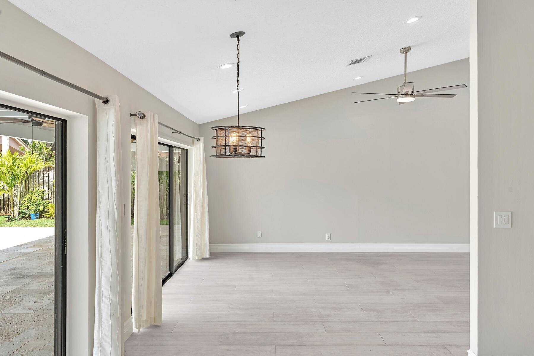 A newly remodeled home with 4 bedrooms and 2.5 baths split plan, on a quiet street. New roof, new 12''x60'' wood style porcelain floor, all 3 baths & kitchen renovated. Heated pool resurfaced with Blue Quartz, travertine patio & deck, outside kitchen, large 49'x14' covered patio. Fenced yard. Formal dining, LR w/remodeled fireplace, family room & open kitchen facing patio & pool. New front door & remodeled entrance. Volume ceilings in all living areas & principal bedroom. Newer hurricane rated & insulated 2-car garage door, new side door. Impact windows in all bedrooms & living areas. Circular driveway.HOA managed perimeter hedges for value enhancing uniformity. A stable neighborhood with A rated schools like Verde K-8 & Boca Raton HS. Access to all the city's Beaches, Parks & Librari