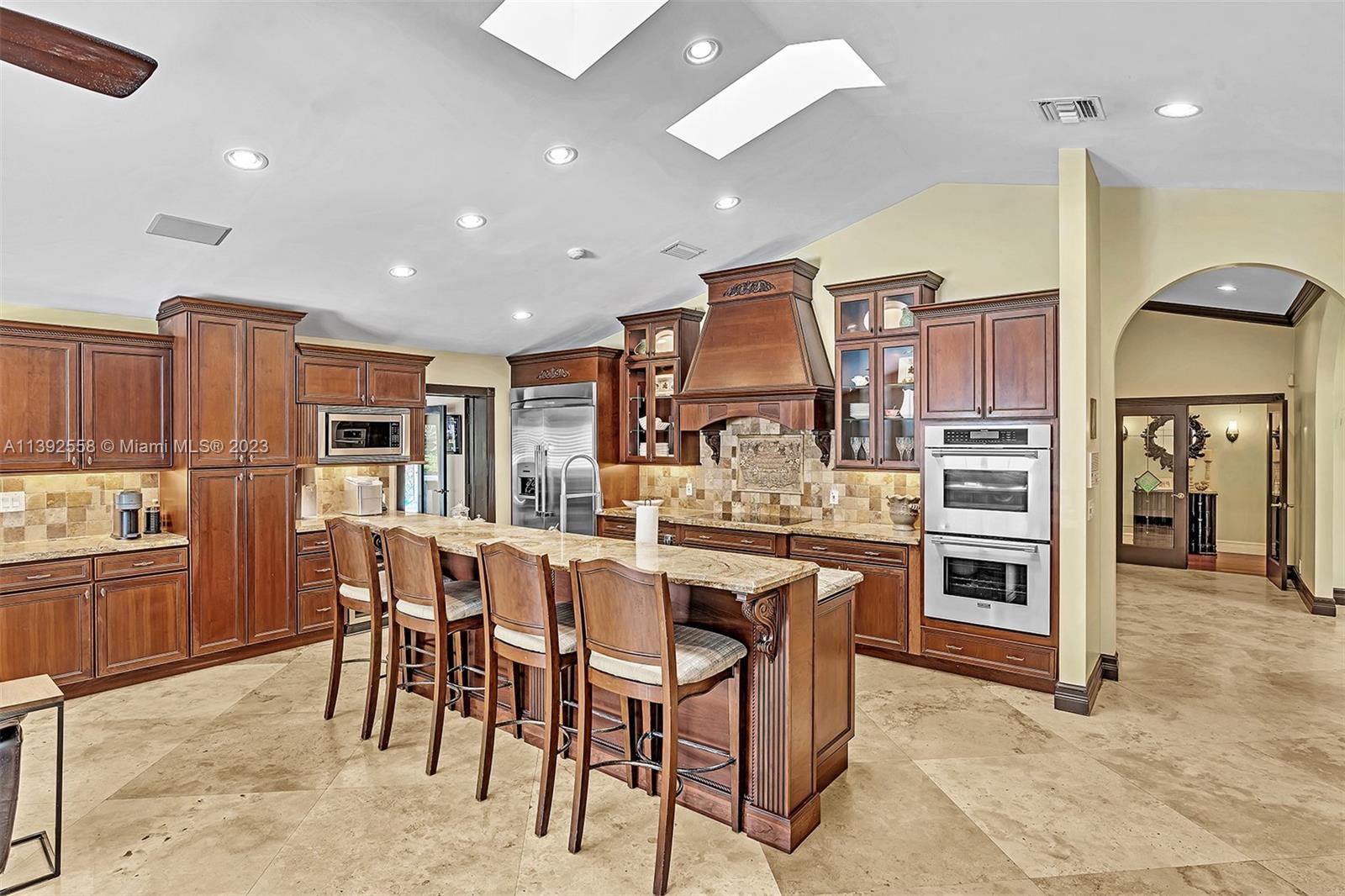 Prestigious Equestrian & Friendly Neighborhood in Southwest Ranches offers a spacious gated Home for sale in the beautiful community of Ivanhoe Estates. This home is located in a quiet neighborhood & features a Guest/Mother-In-Law quarter w separate private entrance. French doors that lead out to overlook the Florida living with spacious plush backyard, oversized pool w jacuzzi & waterfall & fruit trees on the grounds. Backyard is great for entertaining w exterior lighting to give it the ambiance. Interior of home features marble & wood throughout, beautiful kitchen w granite countertops, Thermador stainless steel appliances & plenty of space on the counters as well as cabinetry for storage. Separate laundry room w cabinets & sink. Impact windows w plantation shutters on windows.