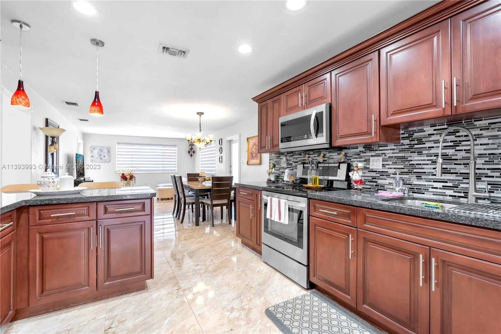 Move in ready single family home on a quiet dead end street. Home has impact windows and doors throughout, open floorplan, PVC plumbing, tiled throughout, and larger than tax roll(1520 sqft). Property is gated in front and fenced in the back. Private oasis in the backyard with full second kitchen over looking the above ground pool that has a deck around it with two large storage sheds. Plenty of room for a boat or RV. All updates were done with permits and No HOA.