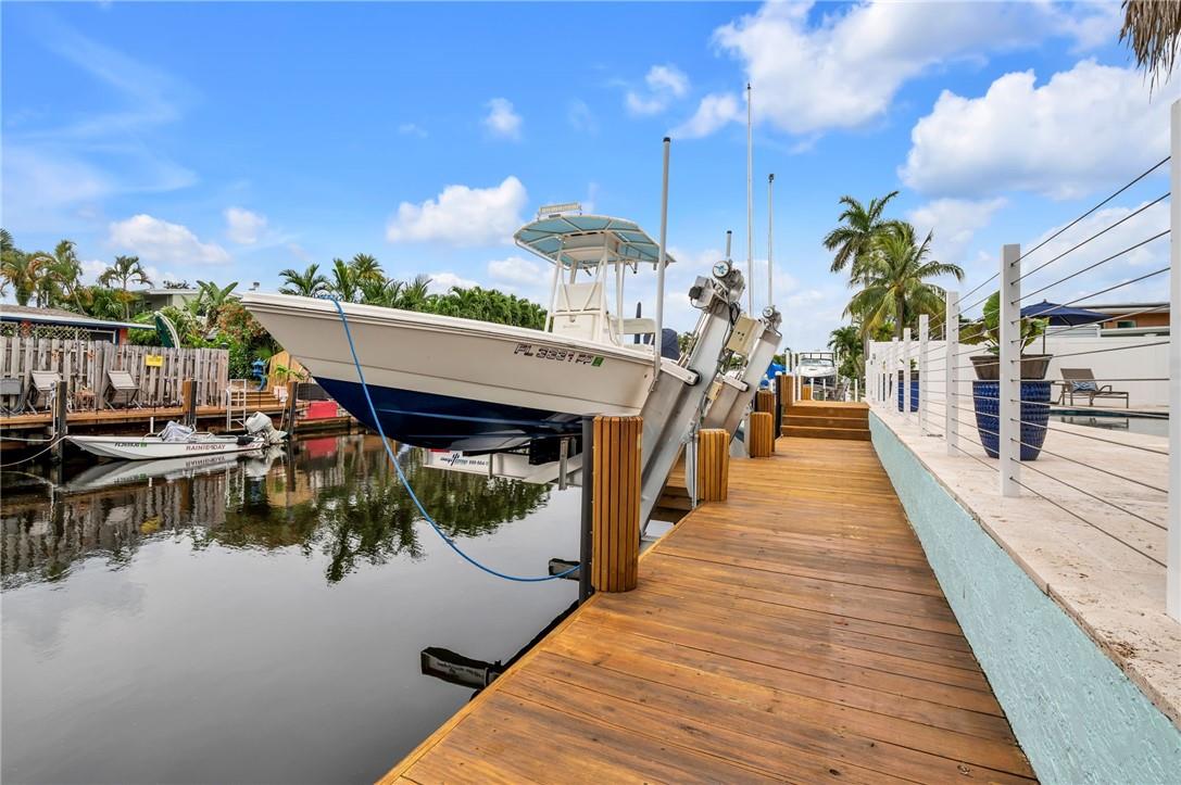 Stunning deep water, ocean access dream home with 65' on canal. You will love the open & spacious living areas, expanded primary suite with walk-around closet & center island, front entry space, fenced front lawn & driveway, 1.5 car garage, 15,000lb boat lift, expansive dockage & more! The list goes on & on. Beautifully renovated in 2019 including new roof, new electric, new PVC pipes, new windows, new kitchen, new bathrooms, new flooring & new lighting. Relax in your crystal blue salt chlorination pool with sun deck entry or chill under your tiki hut. You will be impressed as soon as you enter the home. The impact sliding doors offer great views and lead straight out to the pool & patio area. The open kitchen includes state of the art appliances. No expense has been spared.