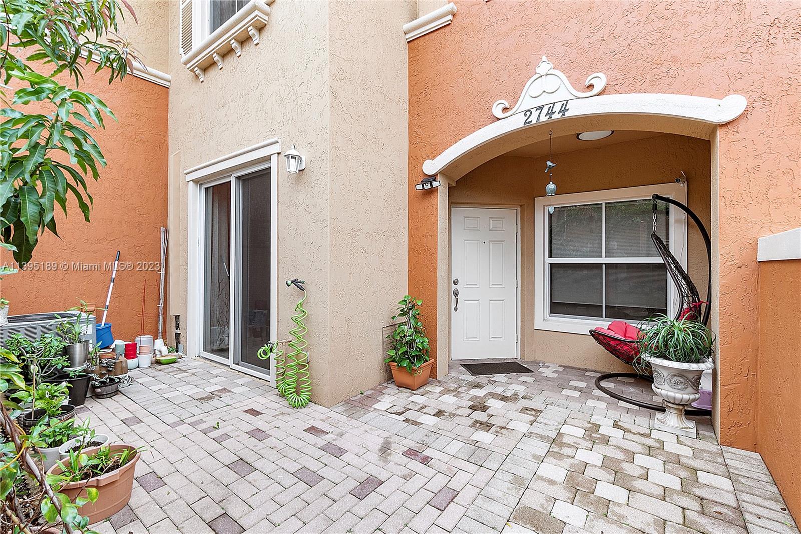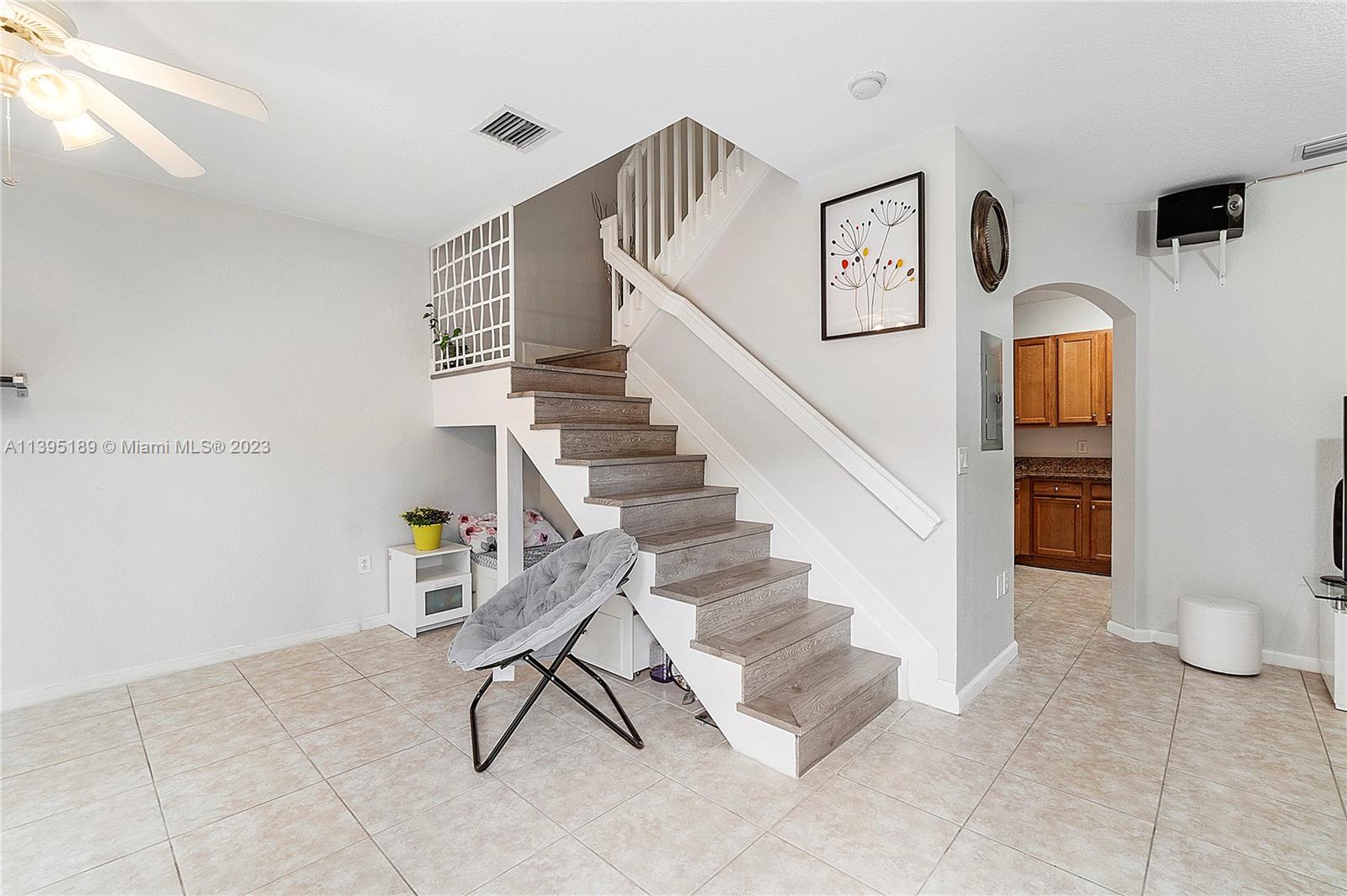 Come see this move in ready cutie! This townhouse is so cozy and it's been updated beautifully. Walk through the private gated patio into a tiled family room that leads to a beautiful kitchen with wood cabinets, granite countertops and stainless steel appliances. From there you can step out to your second gated patio and enjoy your morning coffee. Upstairs you will find luxury vinyl flooring throughout and an updated second full bathroom. The primary bedroom features his and hers closets, a modern updated bathroom and a walk out balcony where you can sit and enjoy the view. This townhome is centrally located in West Miramar; close to dining, shopping and more. For showings please TEXT listing agent with 24 hour advance notice.