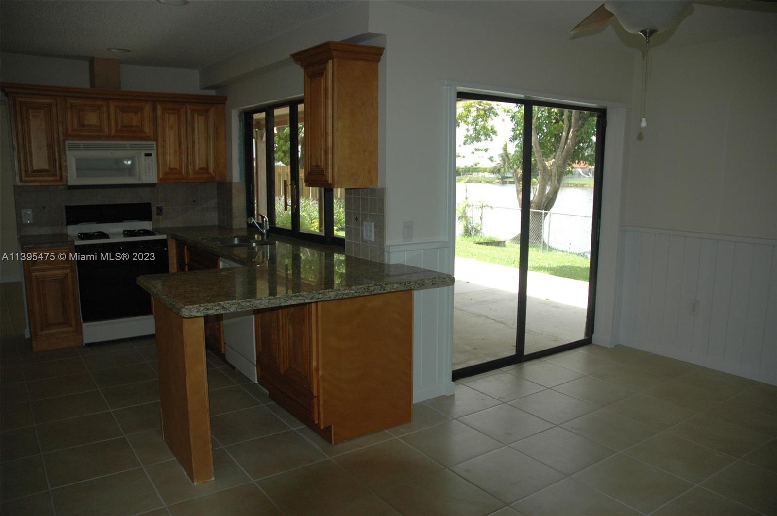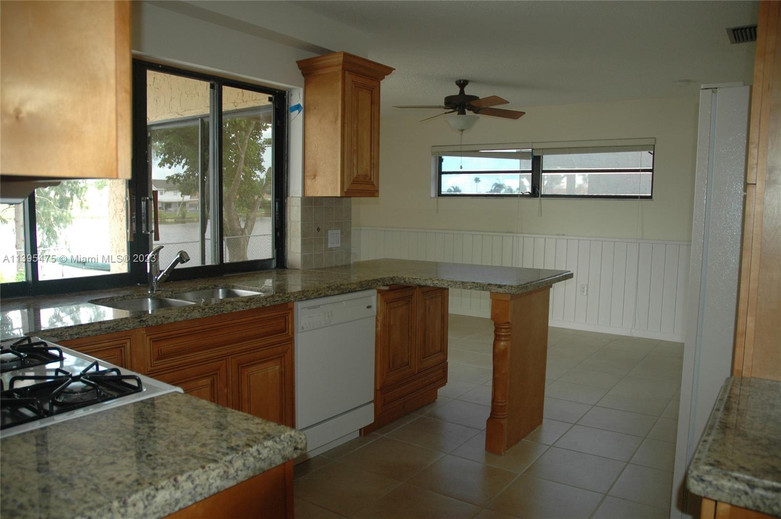 Spacious 3/2 lakefront home in West Sunrise! Featuring wood kitchen cabinetry with granite countertops, gas stove, recess lighting, reverse osmosis water filter system, split floor plan, Mahogany and Camaru flooring in the entry way, wainscoting, ample closet space, cabana bath, sky lights, large fenced in yard, irrigation system, and walk out dock. Complete with hurricane protection. Enjoy beautiful, picturesque lake and sunset views from your back patio. No HOA - Bring your Boat, RV, trucks. Conveniently located minutes from Sawgrass Mills Mall, major expressways, Sunrise Athletic Complex and Welleby Park. Most pictures are to show the space and look of when the home was vacant. Home is currently occupied with owner belongings.