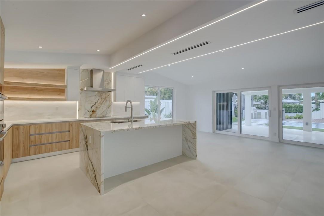 Step into this outstanding 3 bed 2 1/2 bath new construction contemporary design and you will find the highest level of interior finishes with exceptional appointments throughout this masterpiece. The open spacious floor plan boasts a stunning kitchen with high end appliances, one-of-a-kind stone countertops and hand-crafted custom cabinetry. Gather your friends and family and step out to the perfectly designed entertainment center with extraordinary details including a fully equipped lighted summer kitchen, tranquil swimming pool, landscape lighting. Step further down to your own dock with a sitting area suitable for a firepit. No fixed bridges. dock is 20ft, a boat much smaller to fit in the space. This oasis of unique style can be your next home. Feel like you are on vacation forever!