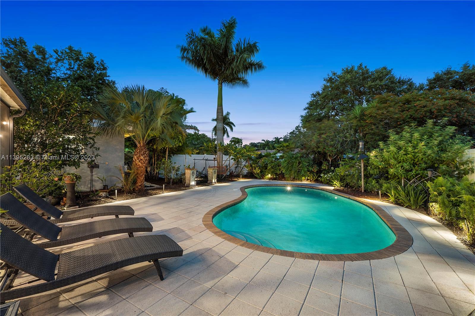 Welcome to your dream home! This 4 bed, 3 bath pool home is nestled in a fantastic neighborhood and boasts an array of impressive upgrades. The house exudes fresh charm with newly painted interiors and exteriors, the kitchen has been transformed with new cabinets, a stylish backsplash, and recessed lighting with granite counters. It can be the perfect home for entertaining, a large and spacious lanai leads out to the pool. All rooms feature laminate flooring, offering both style and ease of maintenance. The meticulous landscaping is ready to welcome you with open arms and promises a South Florida lifestyle in a sought-after location. Home can easily be converted to a 3/2 with a 1/1 guest suite.
