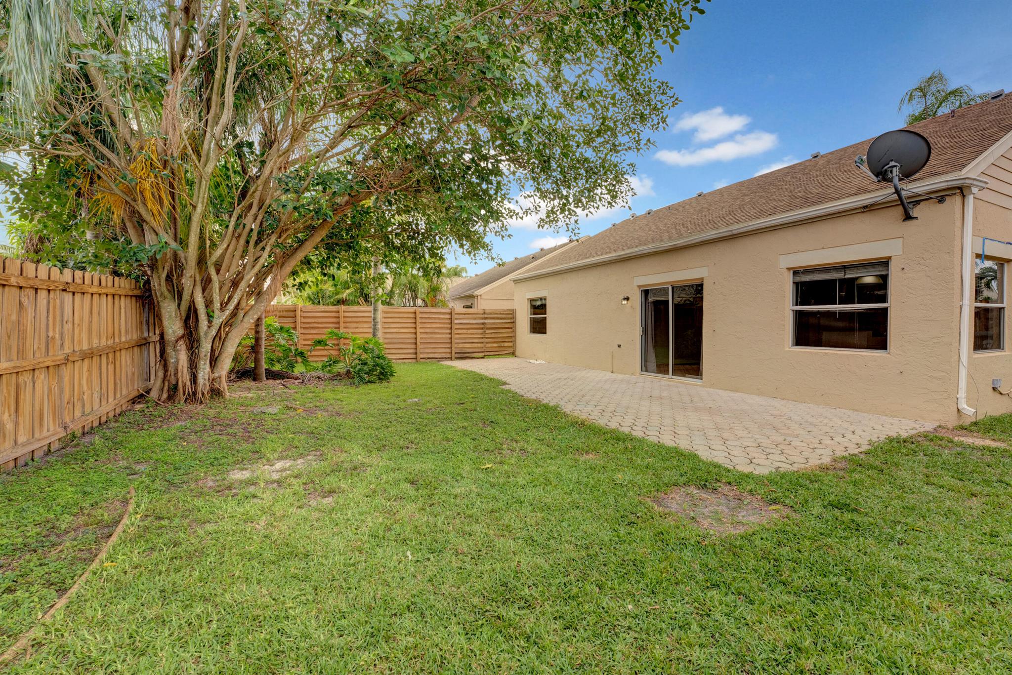 I am adorable and affordable and ready for immediate occupancy! A single family home in Boca for $500k and under!?! CBS construction! New roof 2012, New AC 2019. Front door is hurricane impact. Holes and brackets are installed for panels in the garage. Neutral tile throughout the living and dining area. All bedrooms are laminate wood flooring. High vaulted ceiling in the living area. Look at the gorgeous tile in the main bathroom shower! The backyard is fenced and has a large paved open patio. The community has a tennis court and swimming pool. This home is centrally located and near A rated schools.
