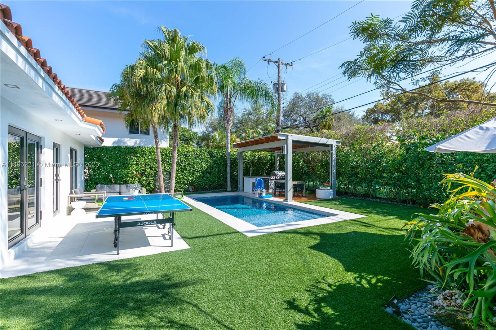 Step inside this impeccably renovated + maintained home in the heart of Coral Gables. This 3-bedroom home welcomes you with a dramatic entrance that is soaked in natural light. Brand-new Italian kitchen w/ an expansive island by Veneta Cucine, hidden pantry + bar area. Gaggenau appliances are found throughout including paneled refrigerator, microwave, hood, cooktop, and oven. The backyard is a tranquil oasis w/a full entertainment area & BBQ. Additional features include an impressive master bath with dual rain showers & Italian floors throughout the house. The house was completely remodeled including plumbing, electricity, walls, and a/c ducts in 2020.