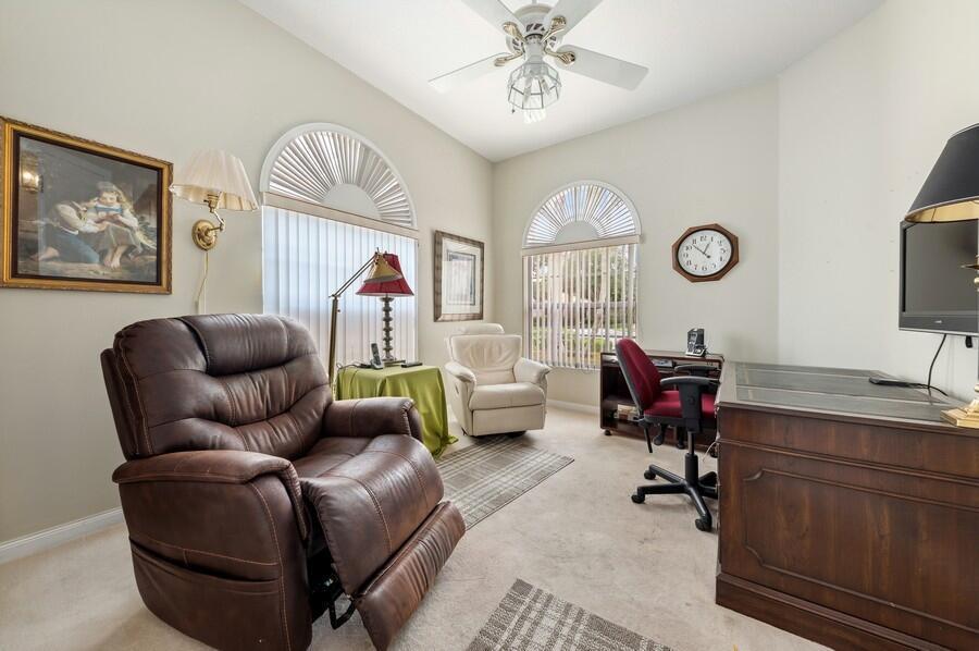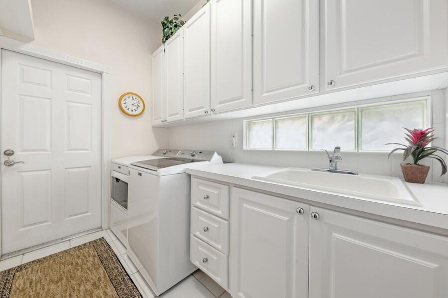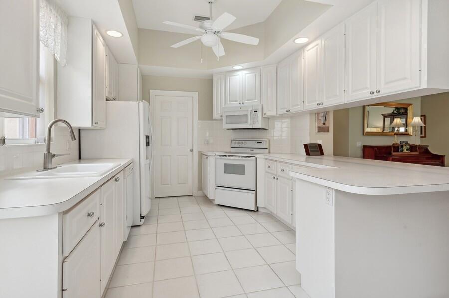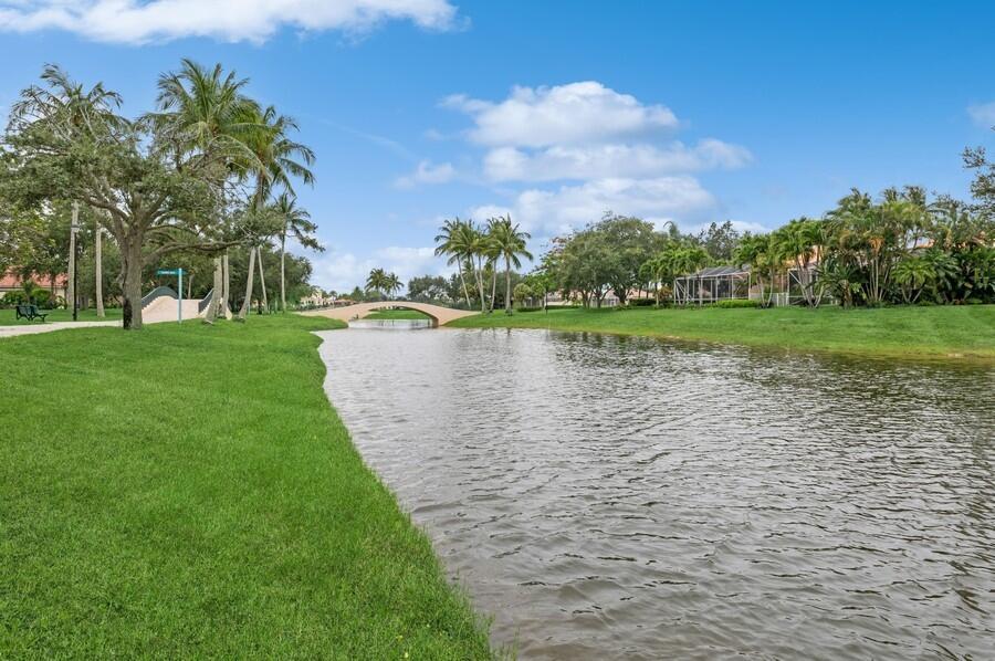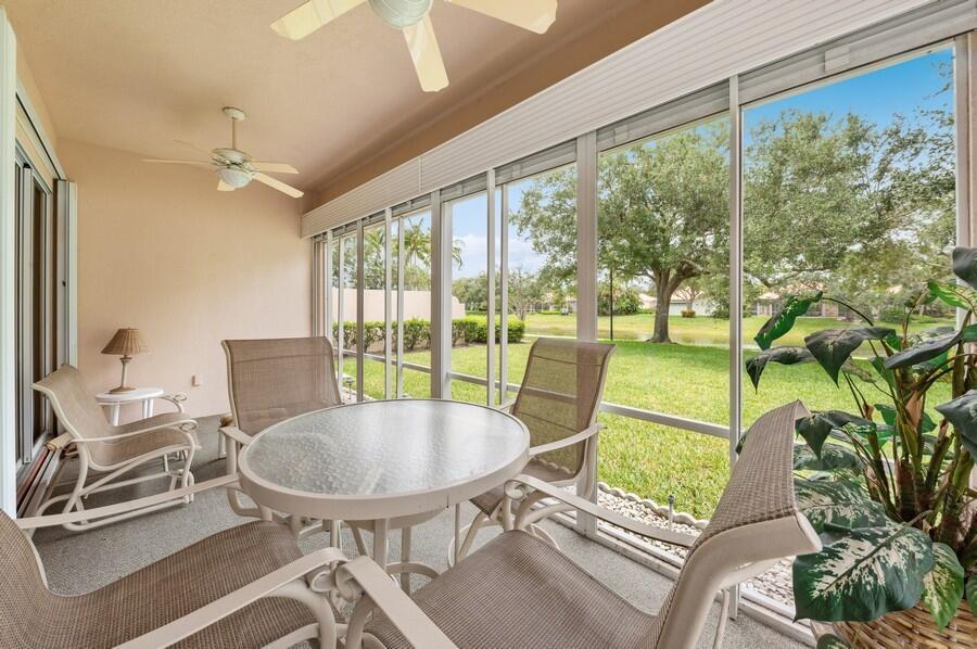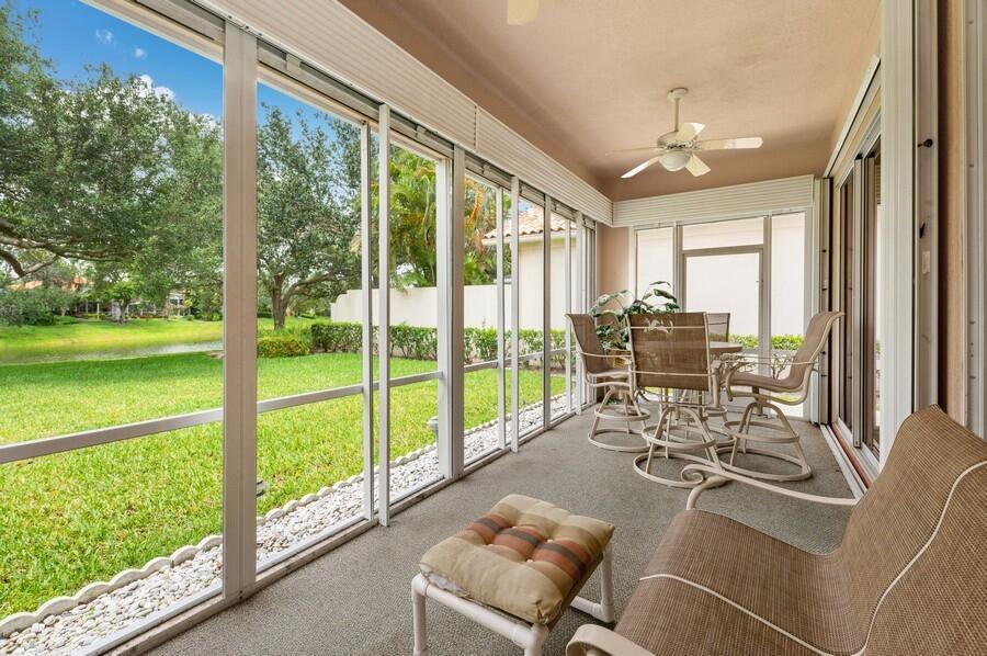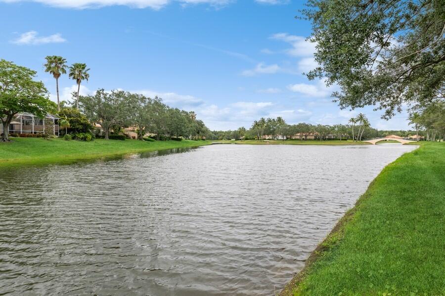 Location! Location! Location! On a Prime Cul de Sac, Extra Wide, Lakeside Tropically Landscaped Lot, This Oakmont has been Beautifully Maintained, Inside & Out! The Entire Interior was Just Painted, in Neutral Colors, as was the Entire Exterior Recently Painted! An Inviting Motor Court with Stenciled Concrete leads to the Side Load Garage, bordered by a Beautifully Landscaped Lawn & to the Covered Screened Entry that Opens to the Foyer, with a Stenciled Floor, that leads to the Carpeted Great Room with a 12 Foot Ceiling, a Full Wall Mirrored Entertainment Center & the Tile Dining Area with a Designer Chandelier, that have 18 Feet of Sliding Glass Doors that lead to a 22 Foot Covered Lanai & Custom Roll Down Shutters, for Extra Protection from the Elements, with Fantastic Views of the Azure