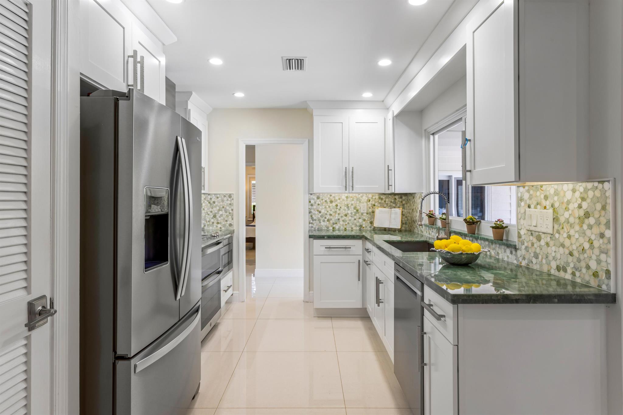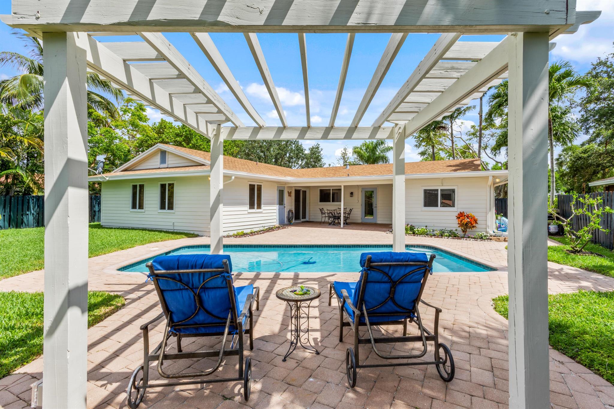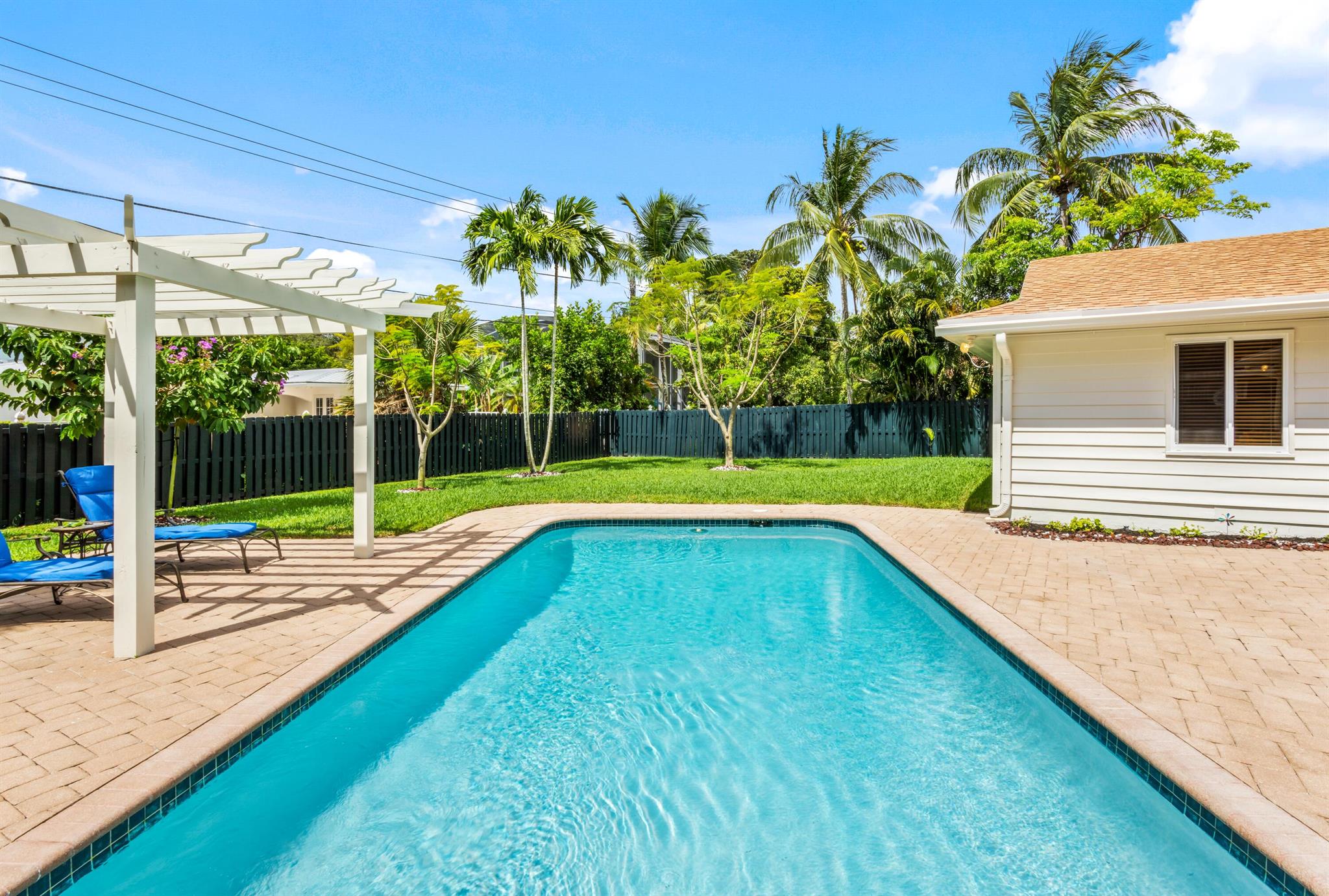 Quietly nestled on an expansive lot in the sought-after enclave of Palm Beach Farms in east Boca Raton within an A-rated school district of Addison Mizner. This charming Coastal-Inspired Estate includes three-bedrooms and two-bathrooms. Newly updated interiors with sleek porcelain and marble floors, shaker-style kitchen cabinetry with stainless steel appliances, and primary suite with separate office. Resort-like pool entertainment area with lanai and pergola. The expansive backyard also features exclusive gate access to Pine Breeze Park. Other amenities include impact windows and doors and cabana bath.