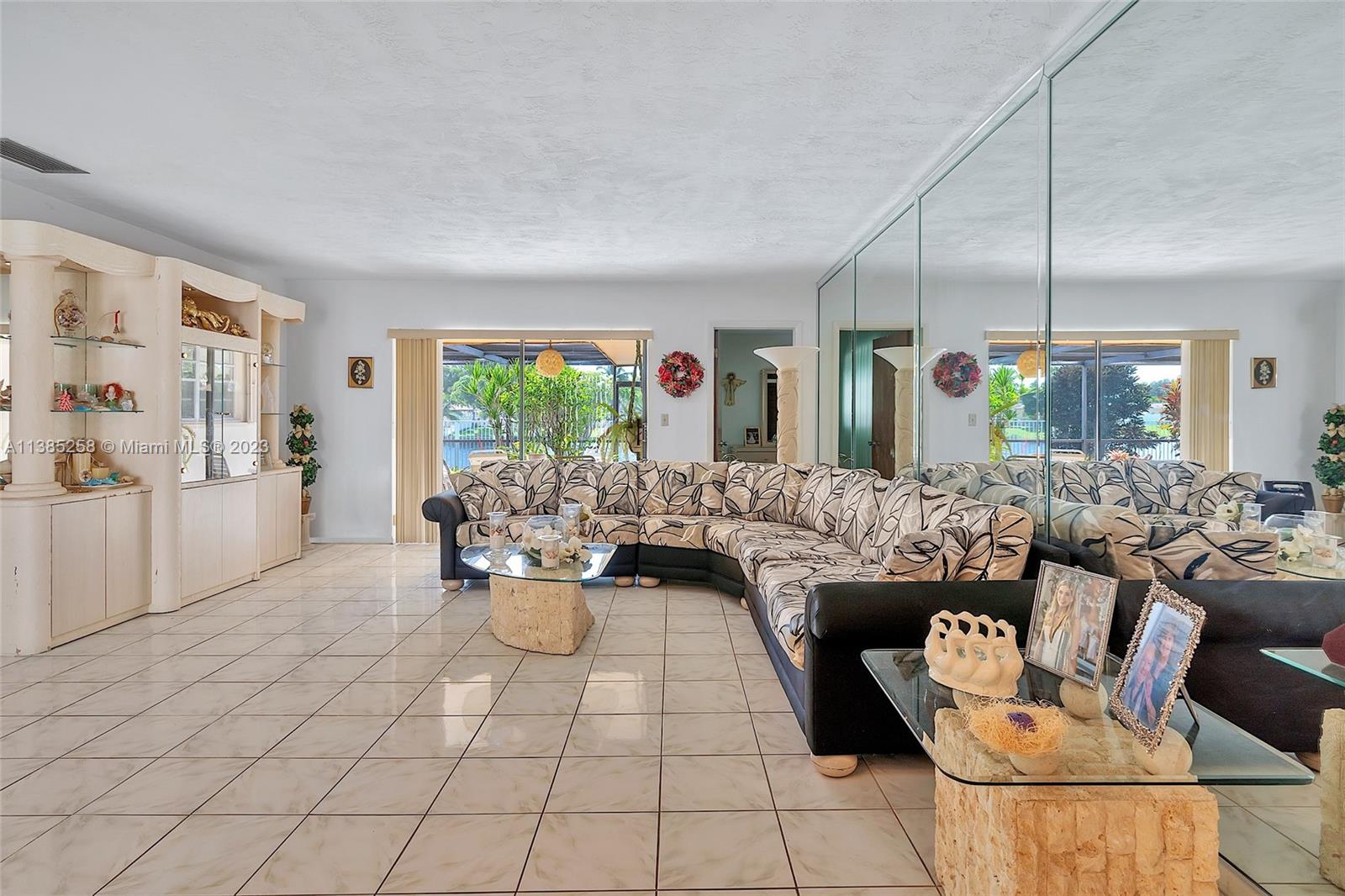 Enter this lovely home as the lake reaches out to greet you. A wonderful house sitting on an oversized waterfront lot. Sit on your covered lanai with an extended patio that sprawls the width of the home. Mature manicured landscaping serviced by your lake fed sprinkler system. Beautiful view. Enjoy Florida living knowing you have the security of hurricane shutters , hurricane grade garage door and a generator that will service the ENTIRE HOME Generator under warranty ,serviced by people’s natural gas. AC THREE YEARS OLD. ROOF ONLY 9 YEARS. SPLIT FLOOR PLAN. Open style Florida room compliments an eat in kitchen. Formal dining and oversized living room. Large bedrooms with extra storage. Two + car garage. This house iwaits for a family to call this home. It really is a special house