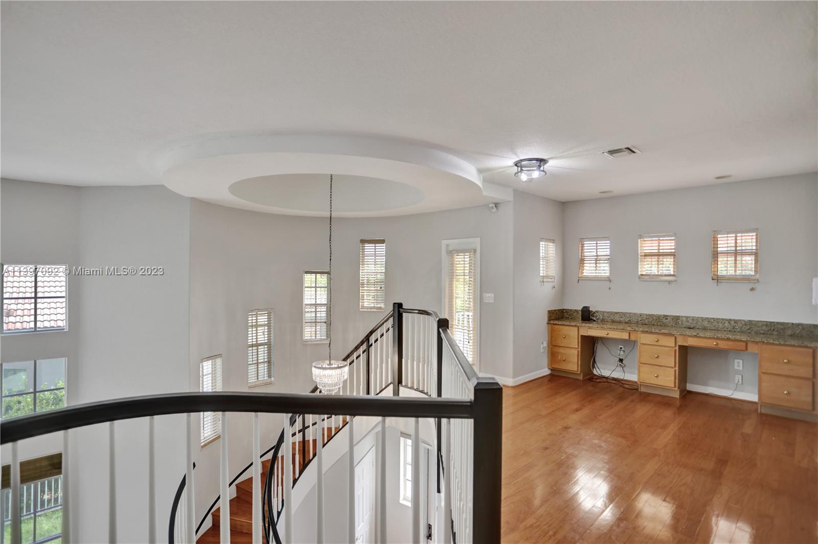 Mediterranean Castle Waterfront Pool Home located in the sought after gated community of Grand Isles. Boasting vaulted ceilings with eng wood floors throughout. Enjoy a bedroom on the first floor with ensuite bathroom. Formal dining room, kitchen and the family room all have the million dollar views, lots of privacy with the Everglades sitting directly across. Fresh exterior and interior paint along with kitchen cabinets and brand new stainless steel appliance. The primary bedroom has sitting area, balcony, 2 walkin closets and huge spa bathroom. Seller willing to give concession for renovations. Sunset Lakes amenities include a clubhouse, pool, gym, tennis and bb courts, Kid’s Club, and more. Come see!