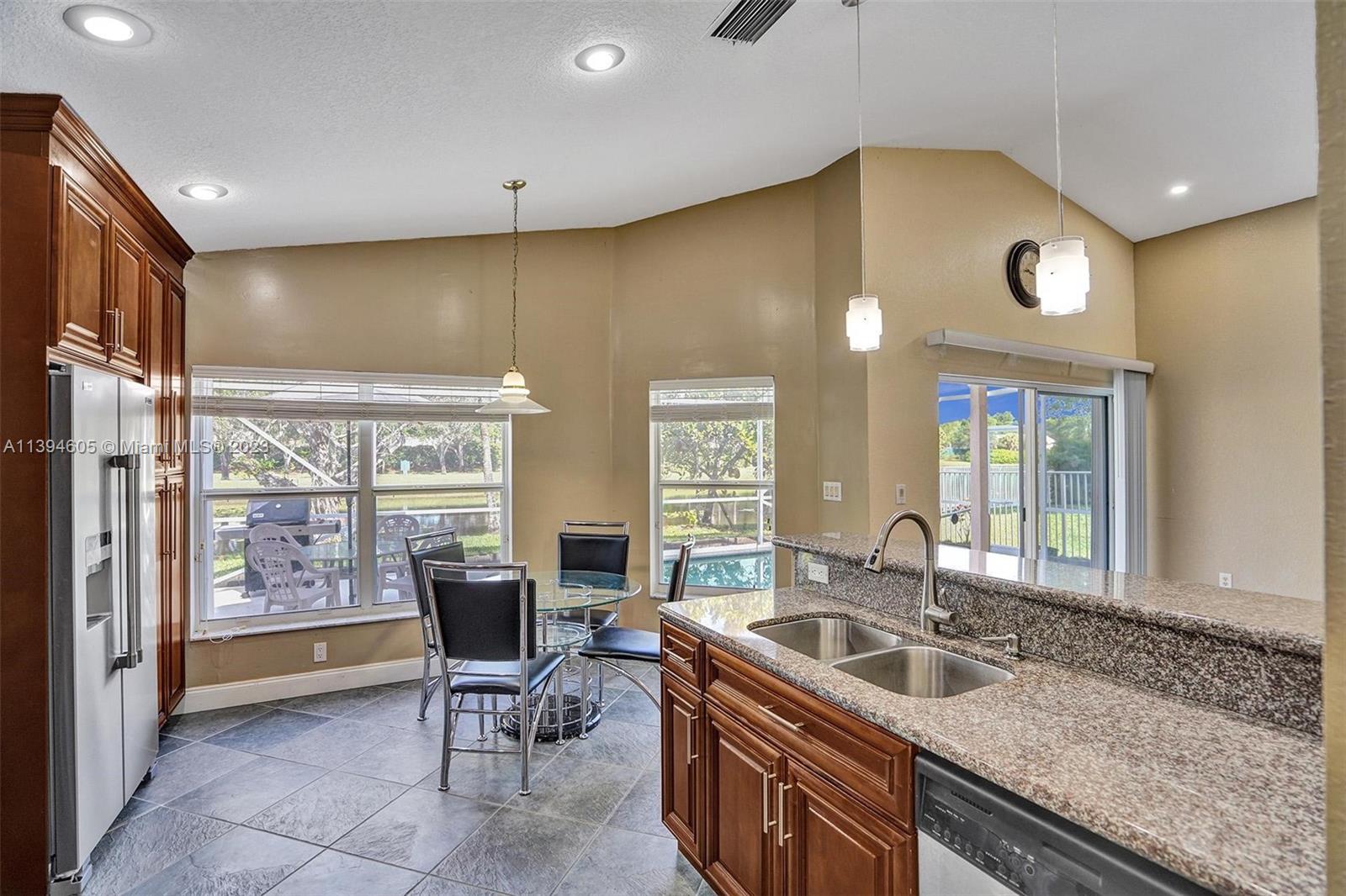 CONTEMPORARY 3 Bed, 2 Bath ***LAKEFRONT FLAMINGO MODEL-POOL HOME*** in Prestigious Pembroke Isles. Featuring an Inviting Floor Plan, Remodeled Kitchen, Wood Cabinetry, Granite Countertops, SS Appliances, Serving Bar, Spacious Master Bedroom, Walk-in & Traditional Closets, Dual Sink Vanity, Roman Tub **NEW VINYL PLANK FLOORING & LED LIGHTING** 2020 A/C, 2023 W/H, Accordion Shutters, Expansive Covered & Screened Patio ***REFRESHING POOL and TRANQUIL LAKE VIEWS*** Residents Enjoy Clubhouse, Fitness Center, Aerobics, Sauna, Tennis, Racquetball, Basketball, Soccer, Volleyball, Swimming Pools, Jacuzzis, Walking/Biking Trails, Pavilions & Children’s Playgrounds. HOA Includes Security, Landscaping, Cable, Internet & Alarm Monitoring. Convenient to Shopping, Dining, Travel & “TOP” Rated Schools.