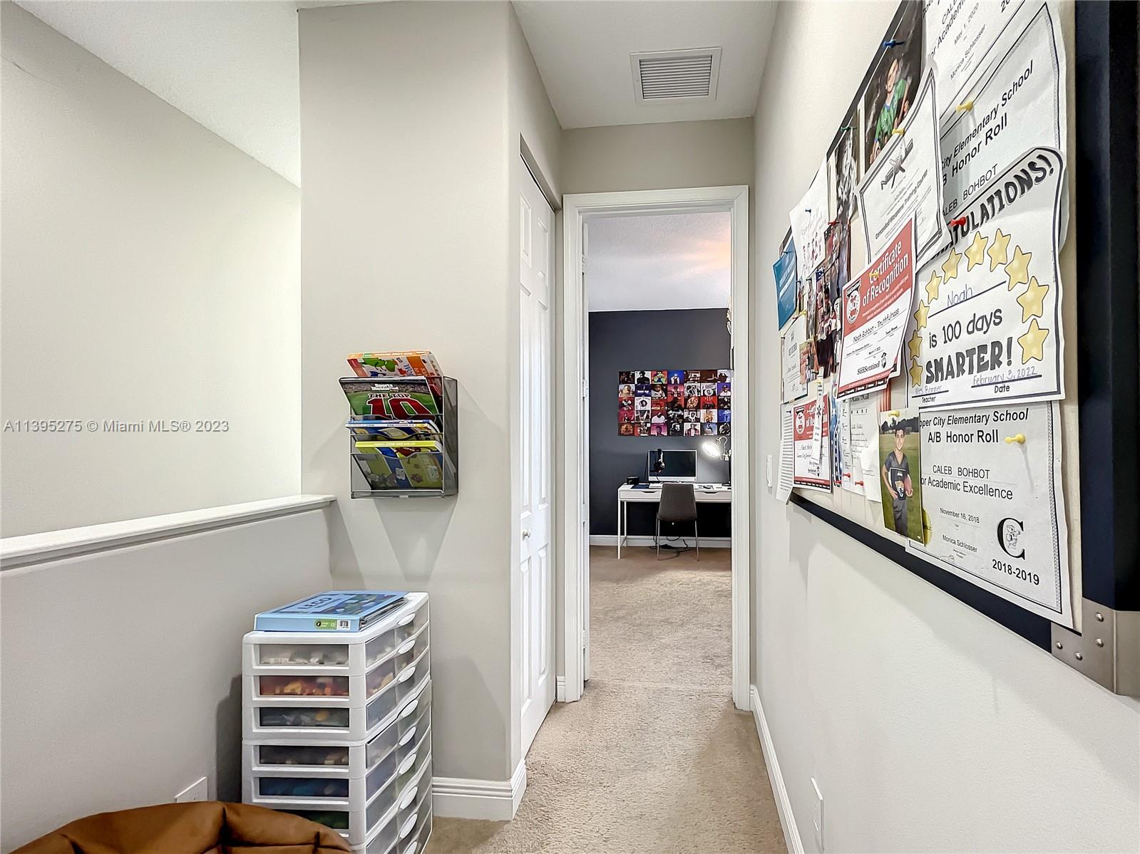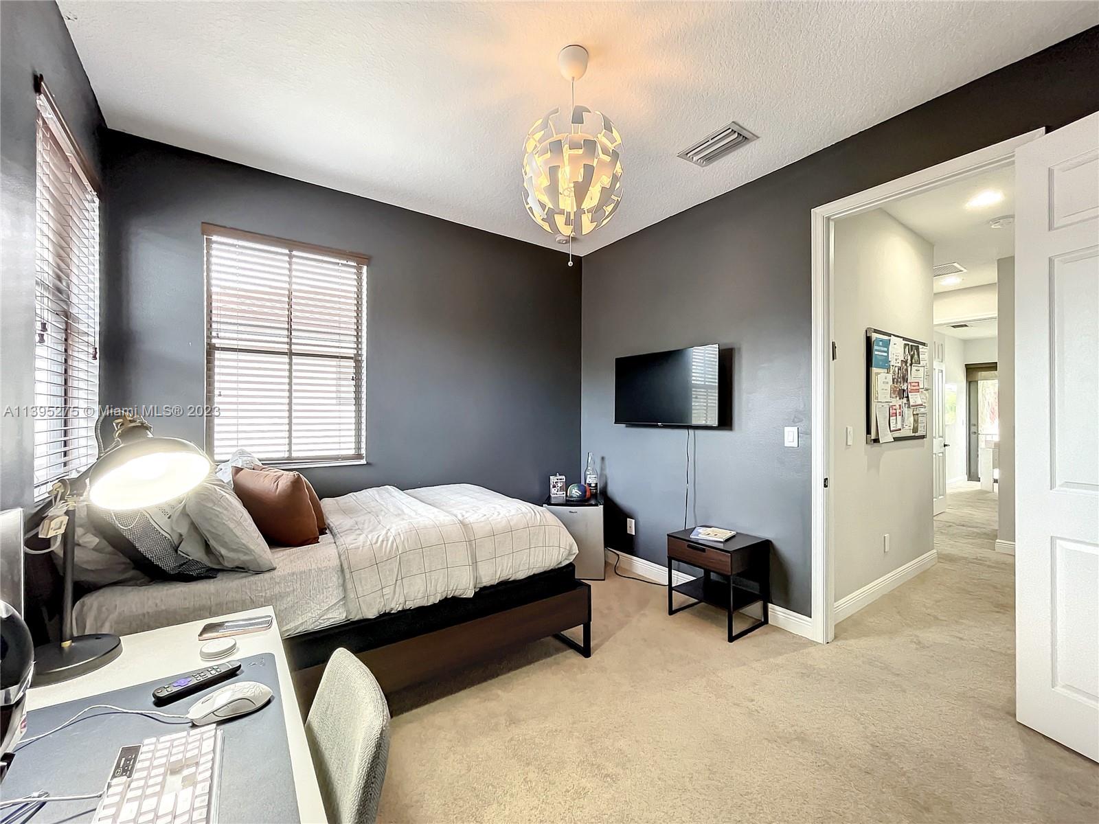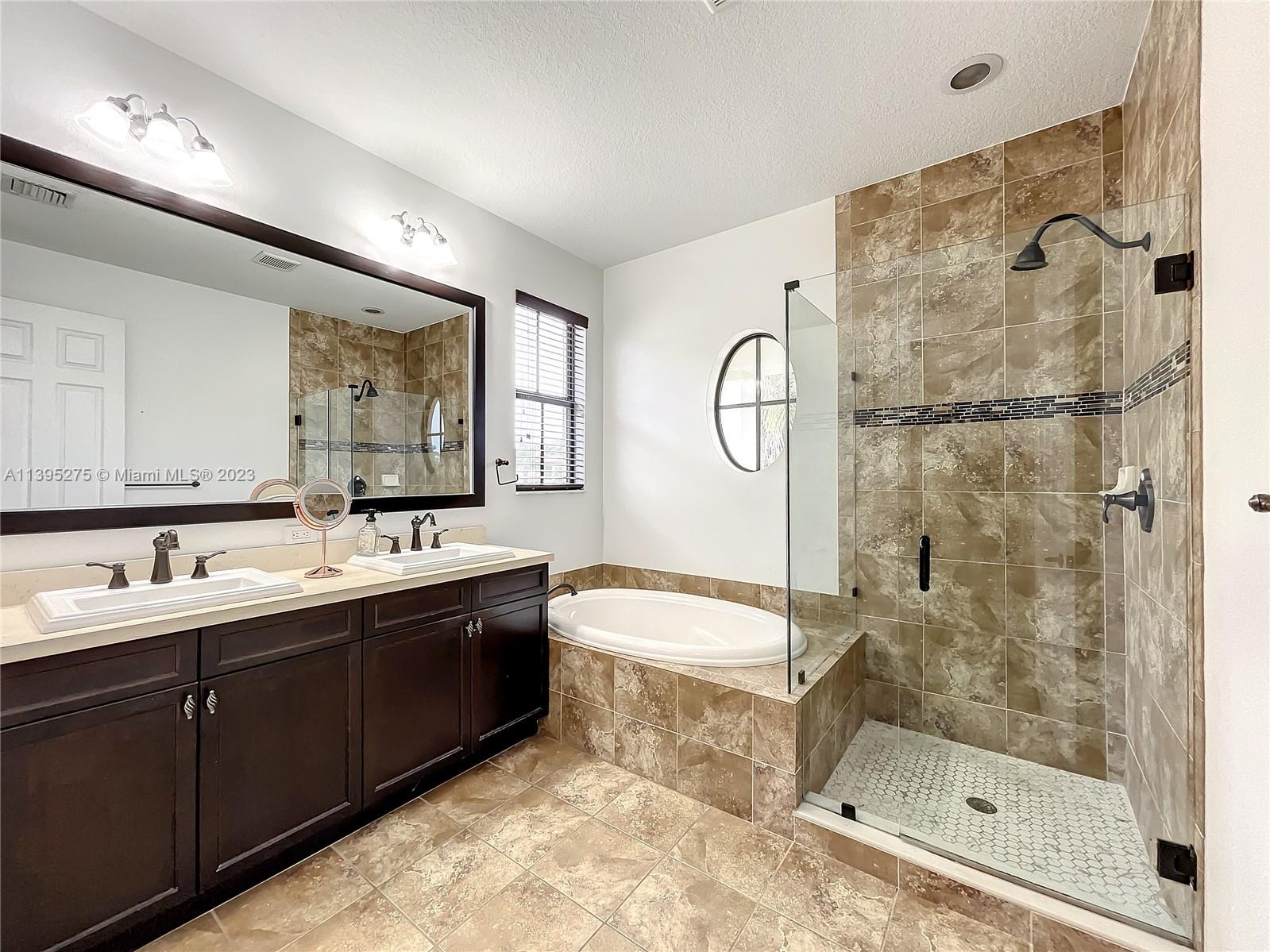 Beautiful open and airy 3 Bedroom 2 1/2 Bath Laguna model in the safe, secure and family-friendly Moneterra gated community. This ready to move-in home features impact windows and doors upstairs. Enjoy cool evenings relaxing on your second floor tiled balcony just off the master bedroom. Custom built in breakfast nook with seating and additional storage right off the kitchen is both architecturally beautiful and functional. Gourmet kitchen includes stainless steel appliances, large 42" dark wood cabinets with built-in's galore, beautiful granite counter tops and illuminated by restoration hardware lighting.All bedrooms feature closets with finished built-in closets. Master suite includes walk-in closet with built-ins and the large glass shower enclosure and sunken tub. This is a must see!