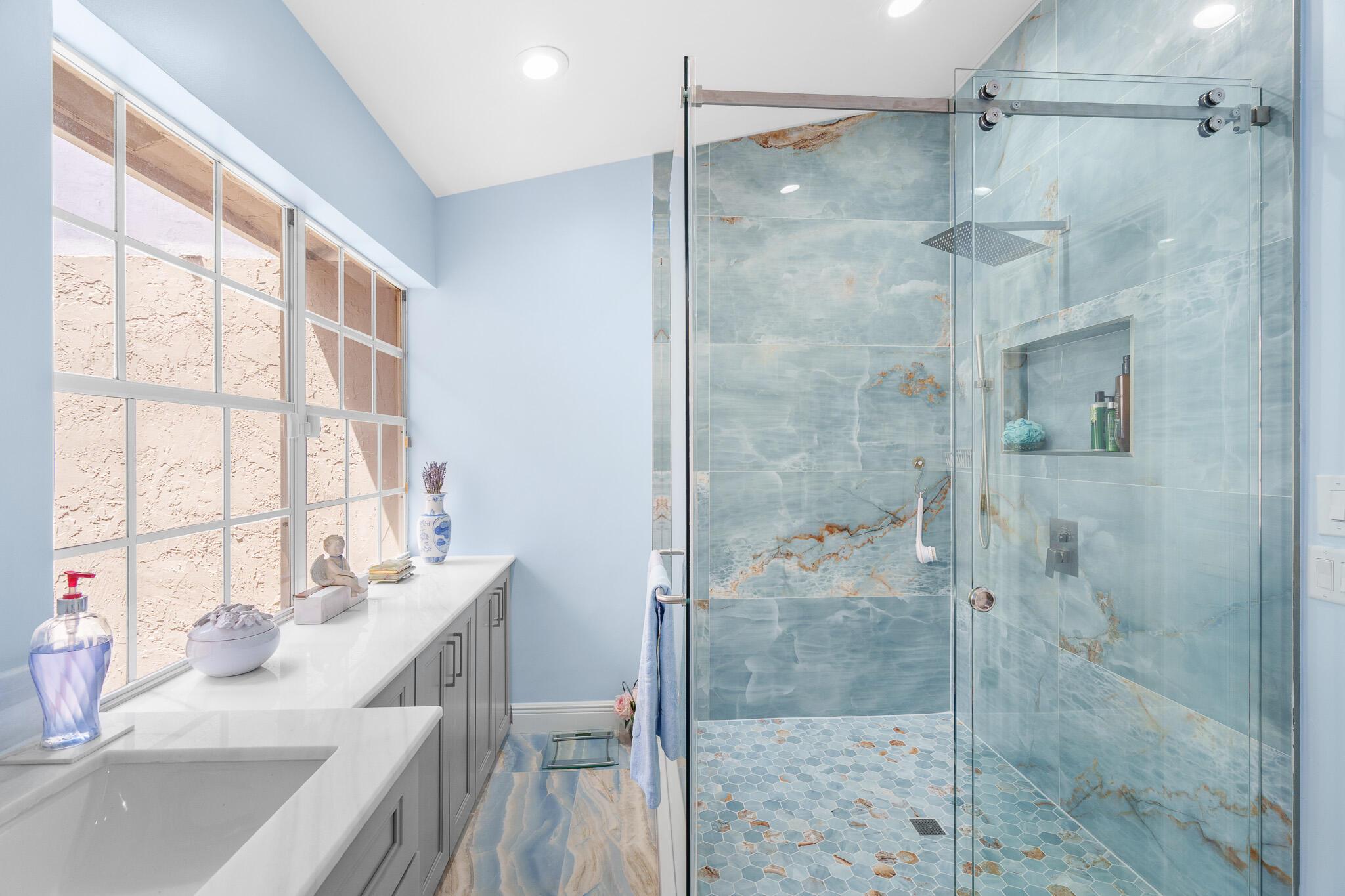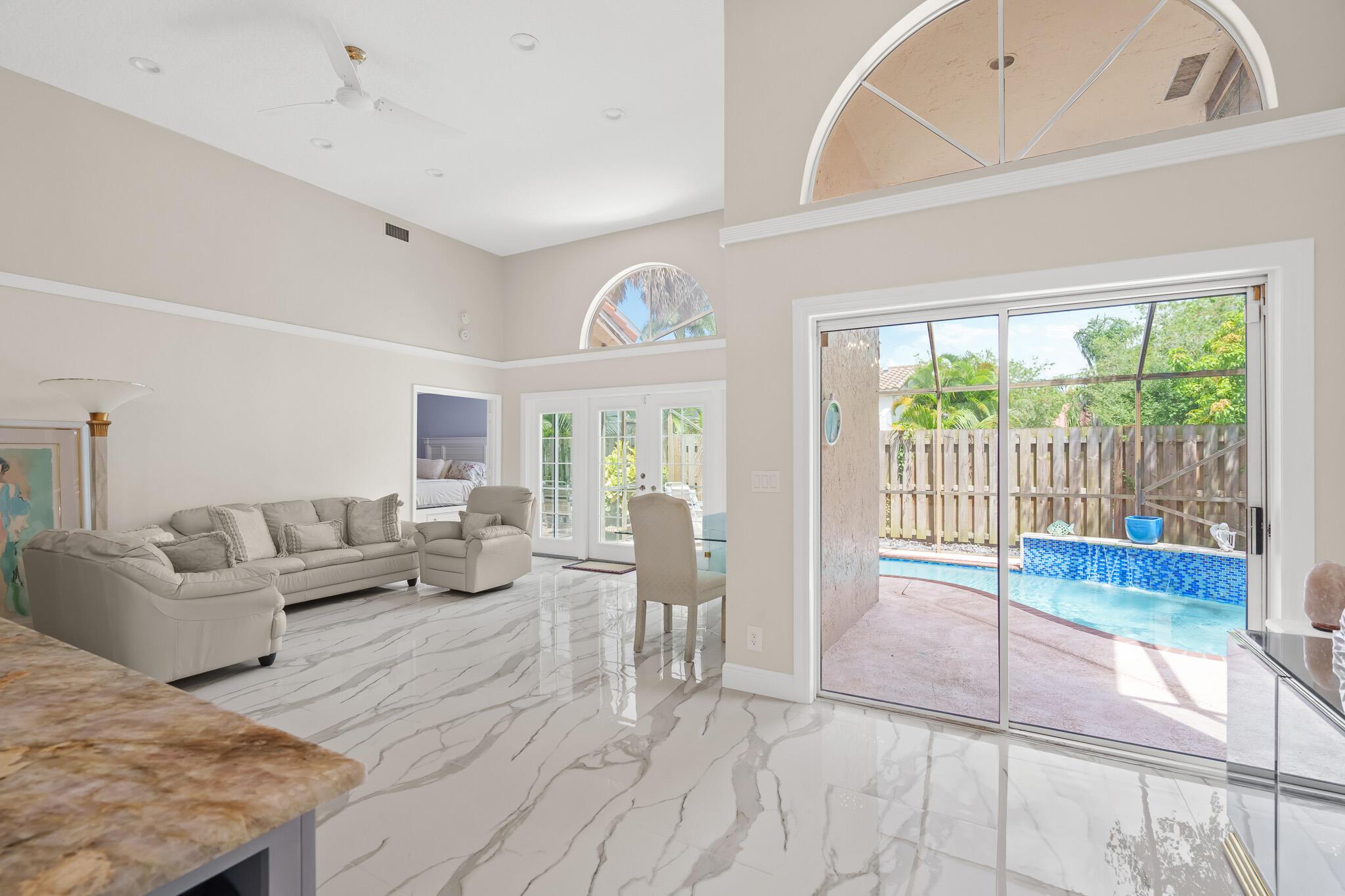 Rarely available! Gorgeous contemporary completely remodeled in Gated & highly desirable Boca Raton Mission Bay VENTURA 4-Bed 2 Bath, Pool & 2 car garage one level, no stairs -huge open layout with 15-foot ceilings, private pool with new 3 speed pump., brand new AC & Water heater, Electric Panel with copper wire connection, newer roof. Brand New wood Kitchen & Master bathroom boasting Quartzite & marble all natural stone, stainless steel appliances with porcelain tile throughout the house. Hurricane protected French doors, New washer and dryer with stainless steel wet sink. all LED recessed lighting with color changing bulbs throughout, This is a County Club living with no mandatory fees. Low HOA! includes resort style amenities clubhouse, pool, jacuzzi, & private gym A+ Rated schools