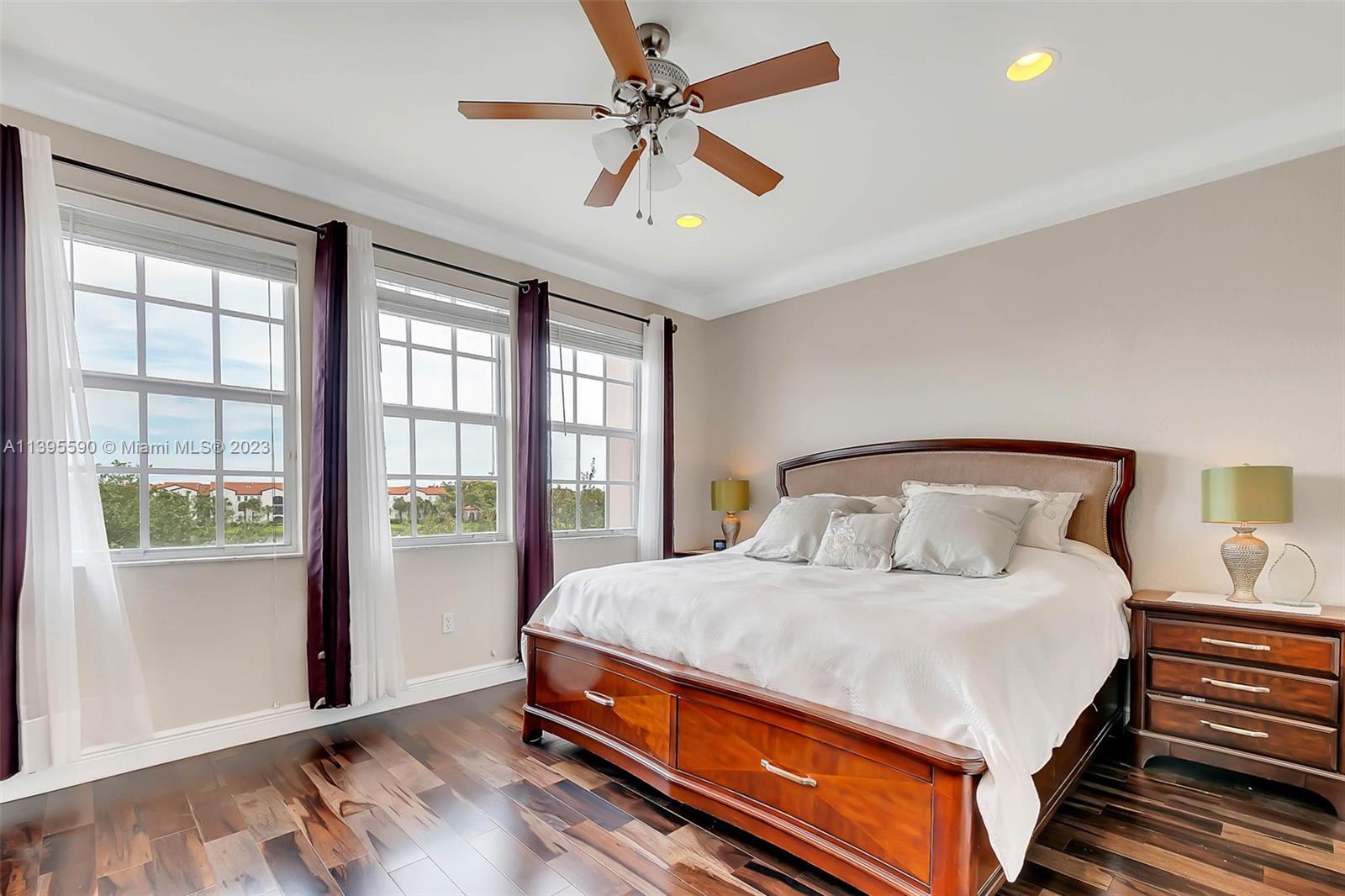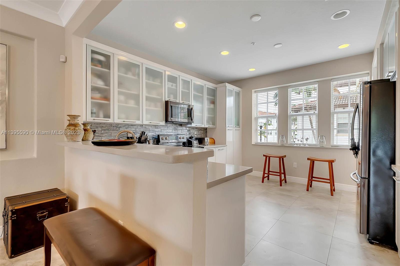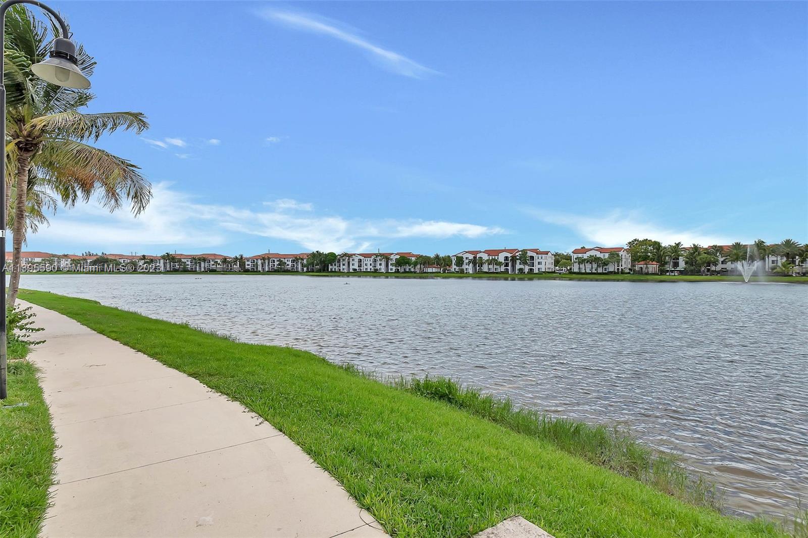 Superb tri level townhome in a gated community w/a serene water view ! A true move in ready, update galore, that was a former model home! Walk into bright living room w/a convenient half bath. Second floor offers a second living & dining room, over looking the beautiful lake. Chefs kitchen w/Corian counters, top of the line black stainless steel appliances & lovely matching back splash. lovely open balcony over looking the lake, perfect for some quite time. Separate laundry room w/storage space. Third offers the master suite with the water view, his & her closet & spa like bathroom, second bedroom has its own bathroom. Bright & open home w/neutral colors recess lights & impact doors & windows, All bathroom & kitchen tastefully renovated. Plenty of storage in this home centrally located!