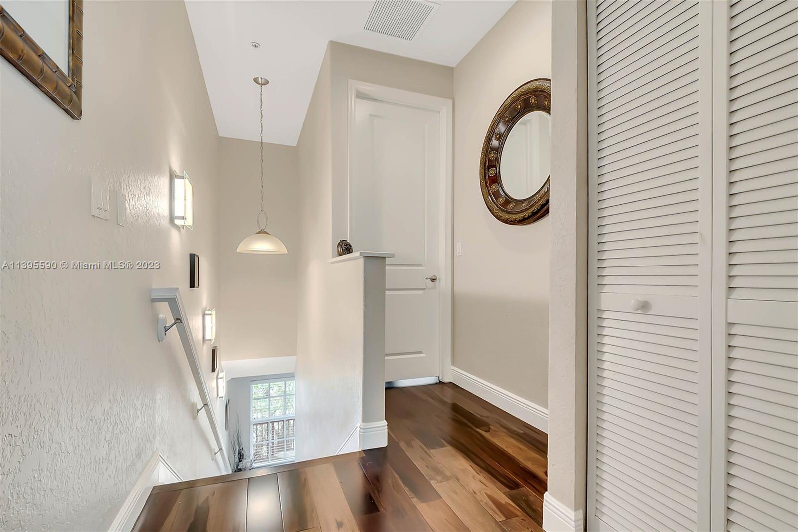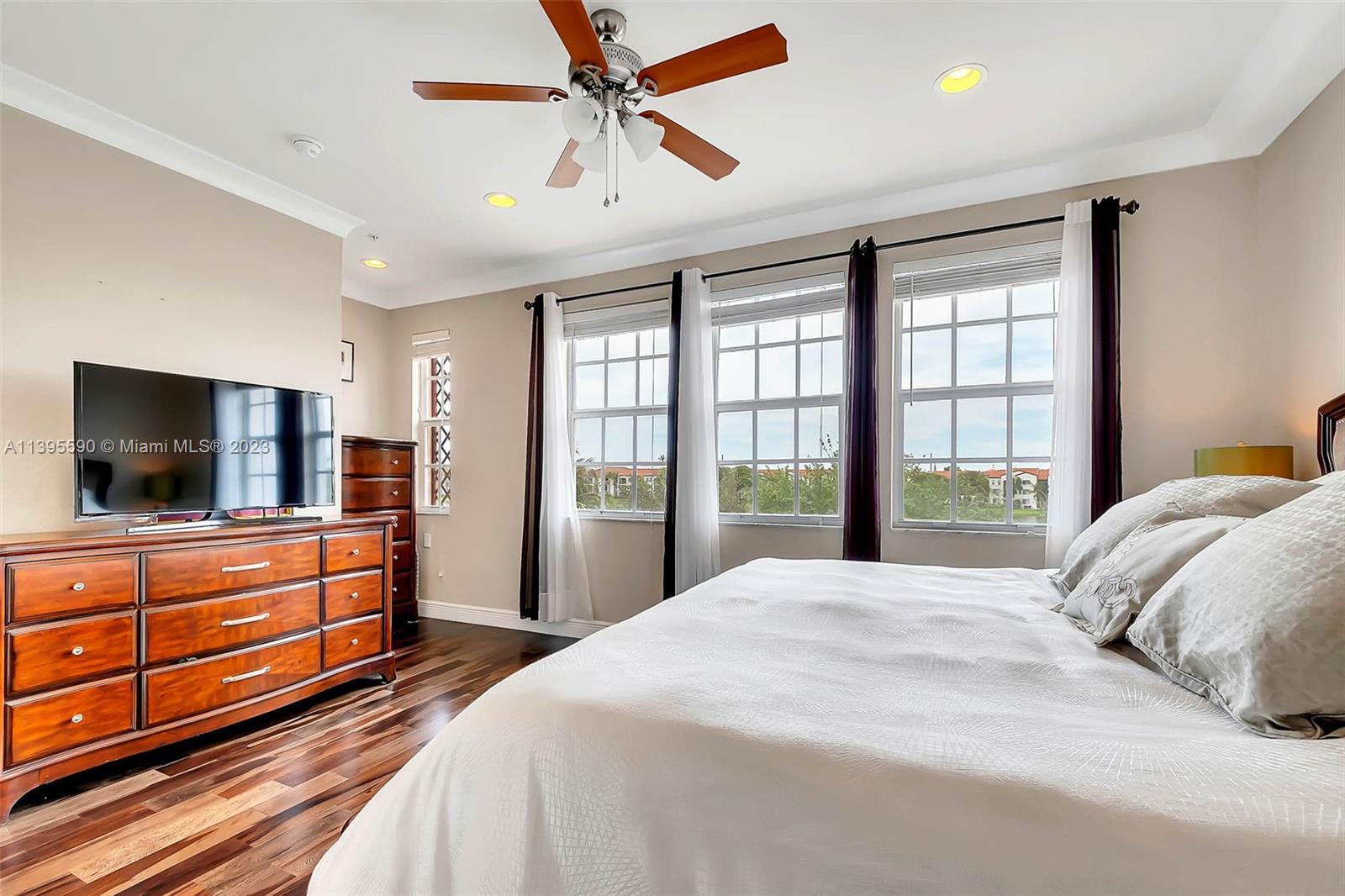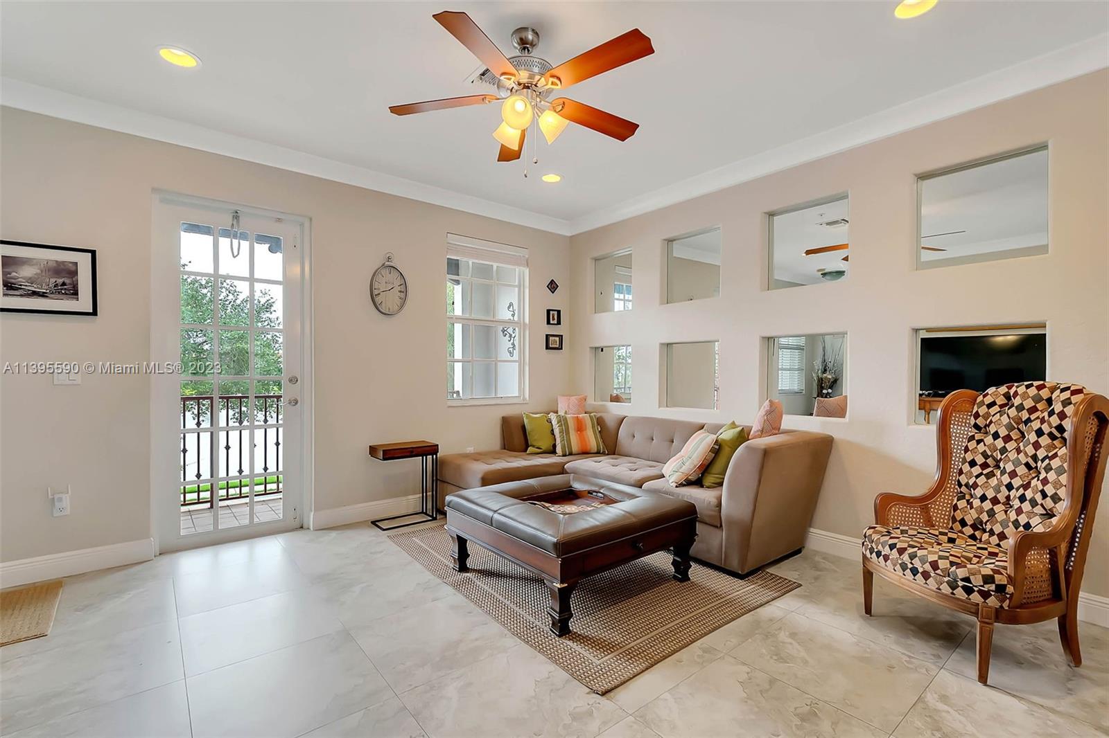 Superb tri level townhome in a gated community w/a serene water view ! A true move in ready, update galore, that was a former model home! Walk into bright living room w/a convenient half bath. Second floor offers a second living & dining room, over looking the beautiful lake. Chefs kitchen w/Corian counters, top of the line black stainless steel appliances & lovely matching back splash. lovely open balcony over looking the lake, perfect for some quite time. Separate laundry room w/storage space. Third offers the master suite with the water view, his & her closet & spa like bathroom, second bedroom has its own bathroom. Bright & open home w/neutral colors recess lights & impact doors & windows, All bathroom & kitchen tastefully renovated. Plenty of storage in this home centrally located!