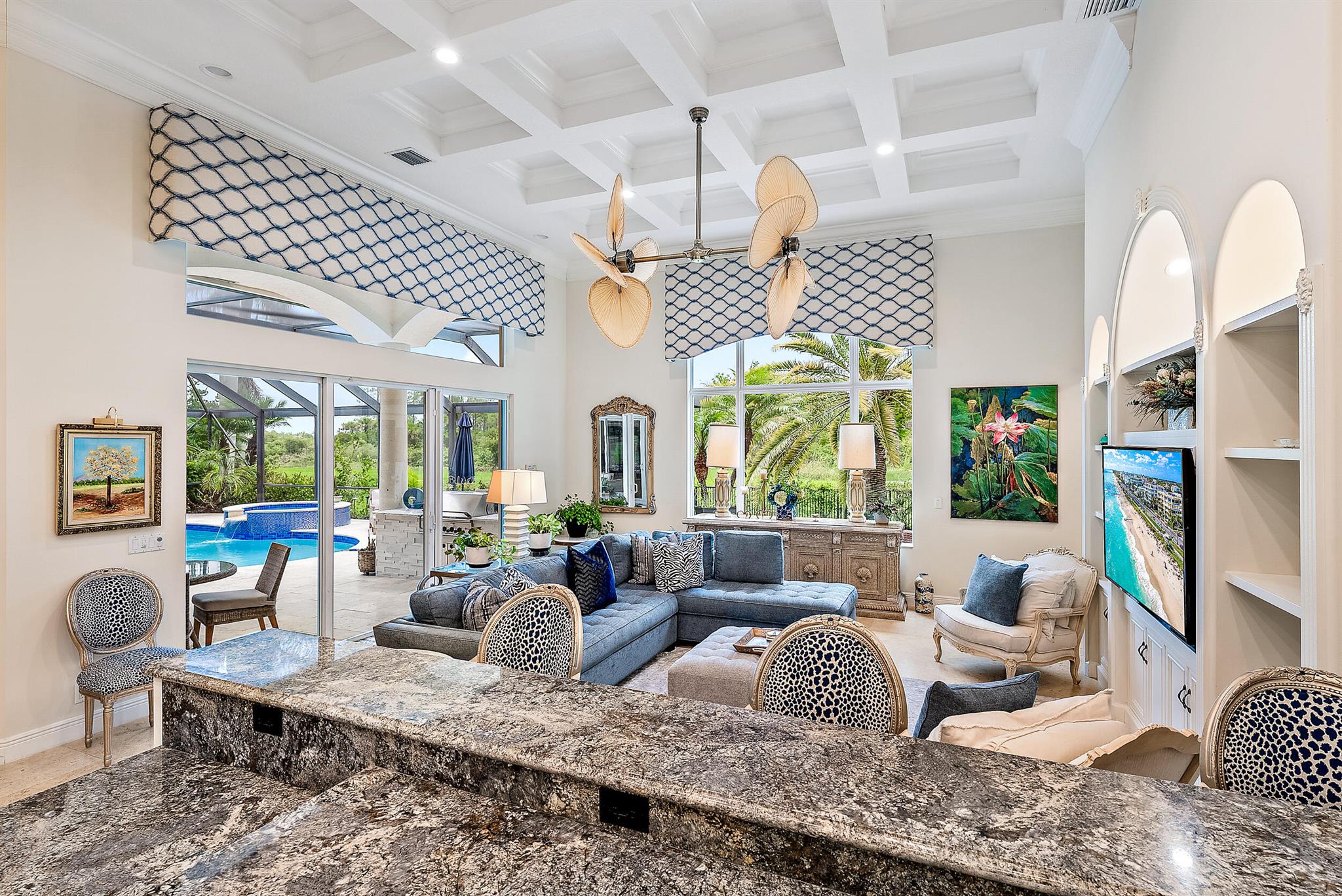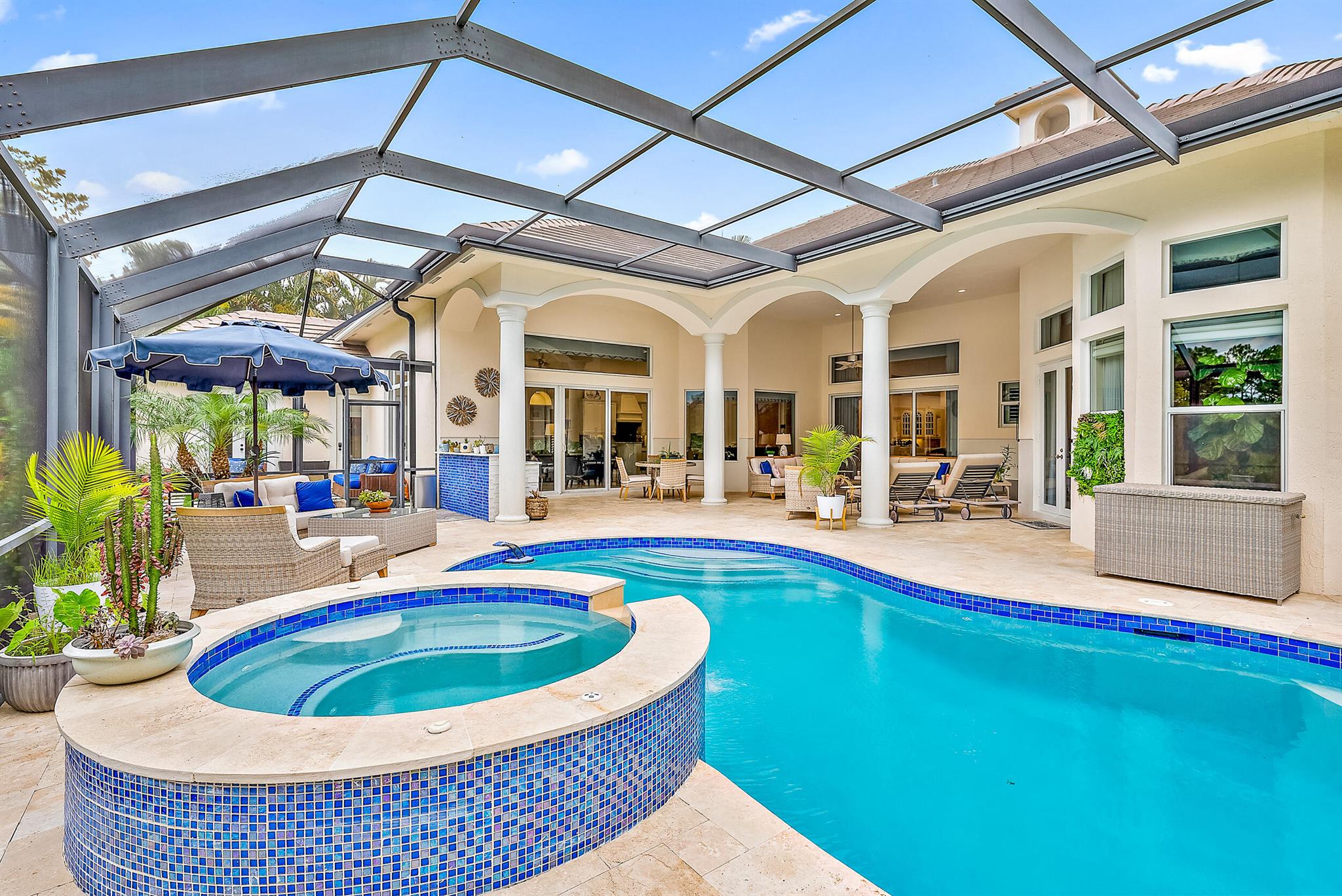 CUSTOM-BUILT Dreamstar estate, boasting 5BR/5.5BA + 3-CAR Garage and recent, major renovations. Located on almost a half-acre lot overlooking pristine nature Preserve, with an eastern exposure in the back, this home graciously expands to nature with incredible covered outdoor space and a beautifully renovated pool. In the past 12 months, the roof and gutters have been replaced, the driveway has been replaced, extensive landscape lighting has been added and the property's landscaping has been completely redesigned. A whole-house generator was added, and the patio, pool and pool tile have been refinished. The pool has been converted to saltwater and new fencing--with frog fencing--has been added. The redesigned interior features elegant marble flooring with extensive custom inlays.
