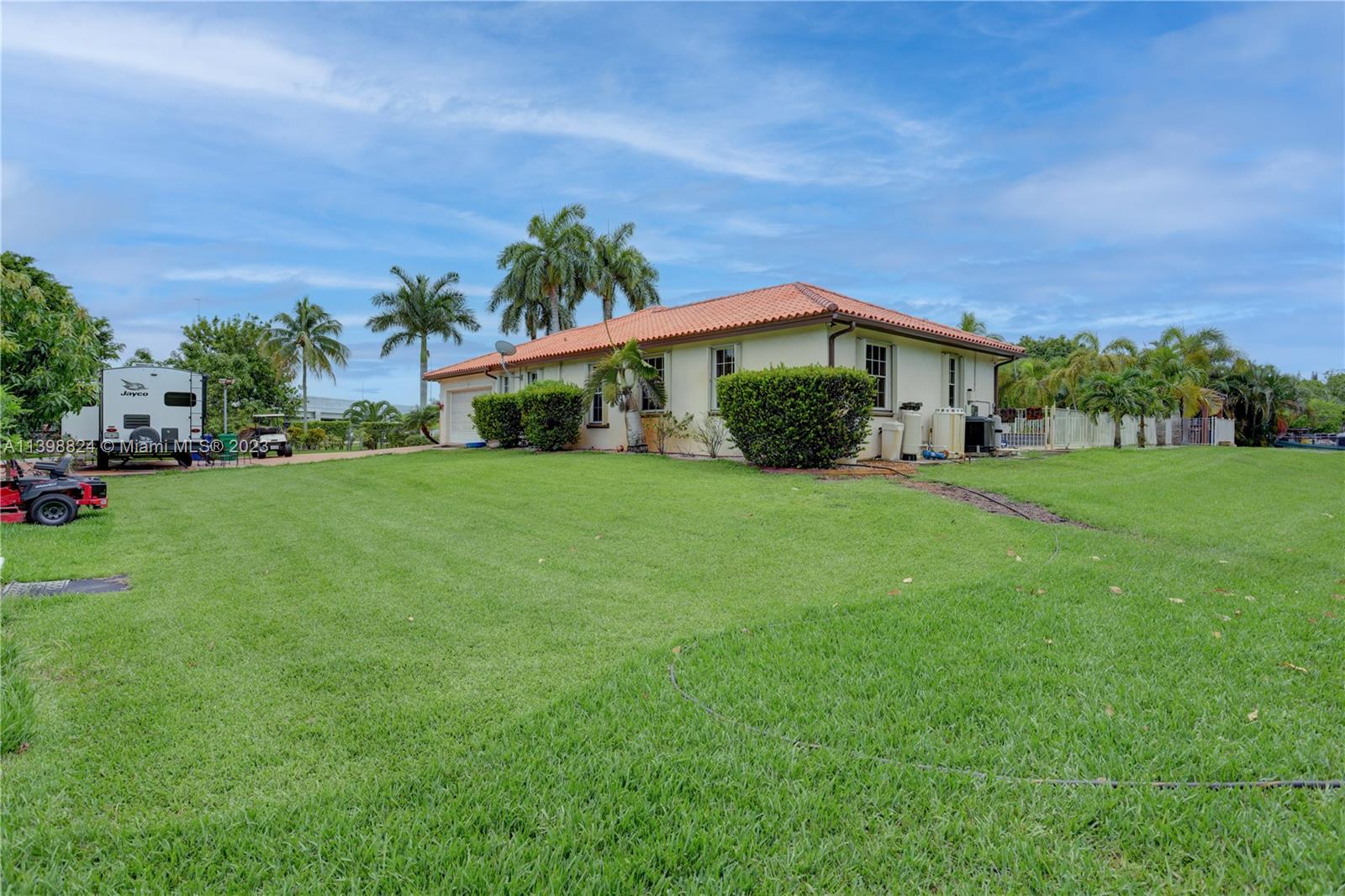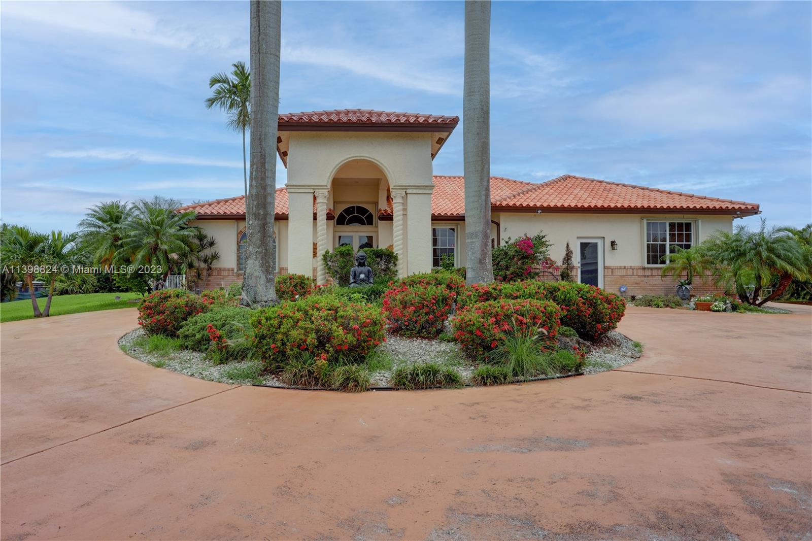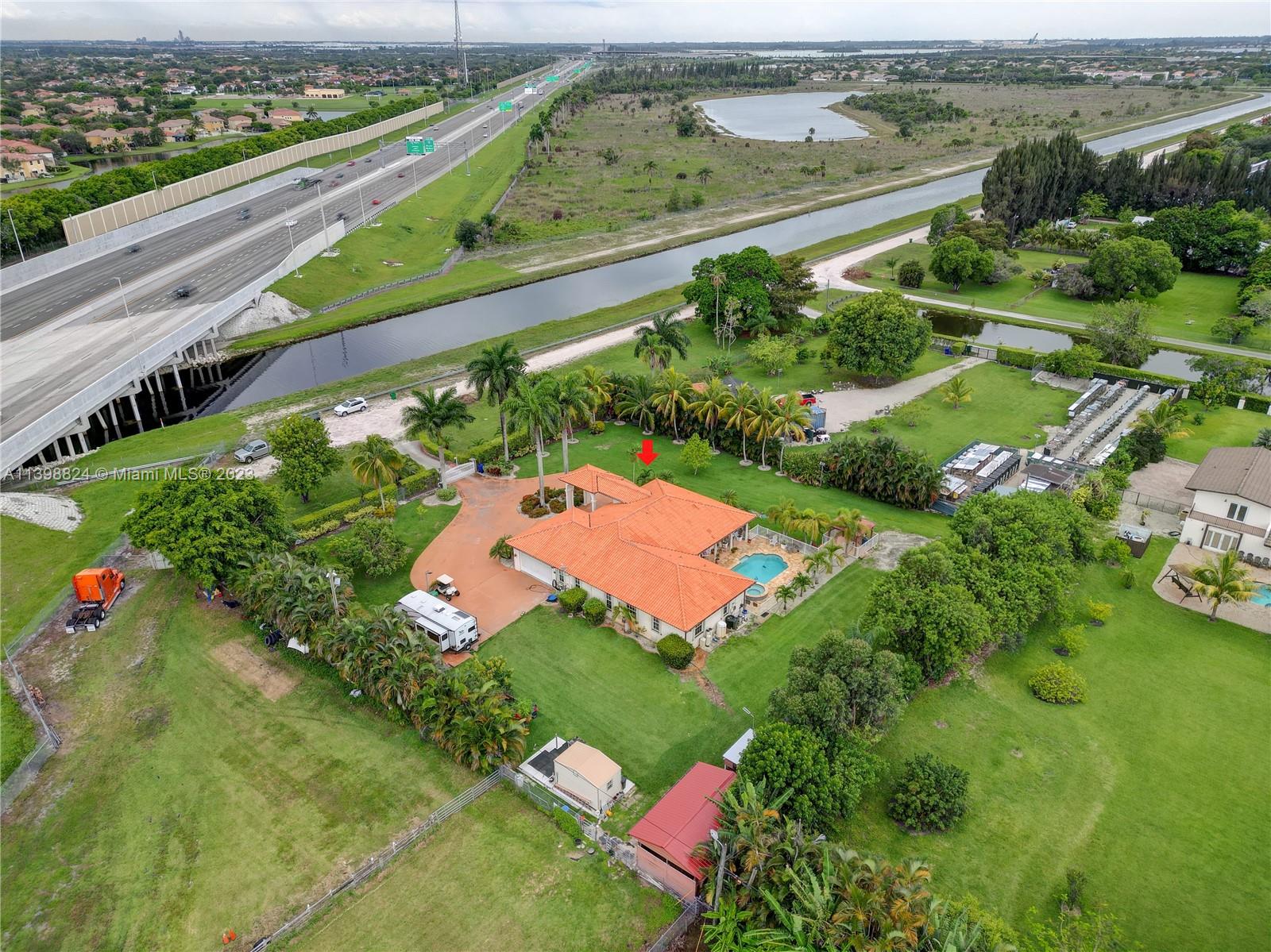 Back on Market!!. price lowered! Country Club Ranches, Prime location proximal to 1-75 and Turnpike, Upscale turnkey home sits on oversized 39, 447 lot and features a large pool with jacuzzi, covered drive thru, SECURITY electronic gate, impact doors and double pane windows, wood Cabinetry & Granite counters, porcelain floors, 4 bedrooms 2 1/2 baths, Walk in closet in Master Bedroom, and HUGE great room housing family, kitchen and plenty of Eating spaces, 2 car Garage Tiled and air conditioned with Split AC. for ADDING STORAGE, lot is almost an ACRE, plenty of space for your Vehicles, Boat, RV. HAS 2 Horse stalls, and a brand NEW STORAGE SHED, property has 10 COCONUT TREES and many more TROPICAL FRUIT TREES on grounds. House sits on a very spacious private lot, and NO HOA FEES