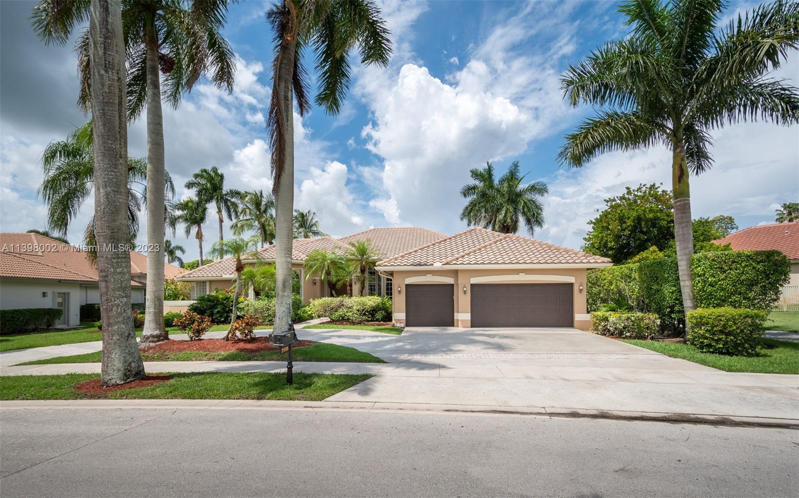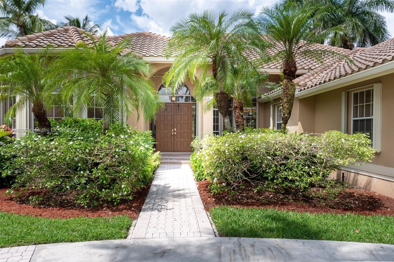 Welcome to this exquisite home in the prestigious Weston Hills Country Club. Enjoy stunning views of the golf course from your backyard oasis, expansive patio area and pool. This spacious one-story residence boasts 4 large bedrooms, 4.5 baths, and an additional office. Step inside and be greeted by high ceilings, allowing for an abundance of natural light throughout. The accordion shutters offer convenience and peace of mind during the storm season. The solar panels ensure energy efficiency for the pool heater and hot water system. Circular driveway and the 3-car garage attached provide ample parking for guests. Roof 2012 and AC 2021. Located within the boundaries of highly sought-after A-rated schools, this is an ideal home. Don't miss the opportunity, schedule your showing today