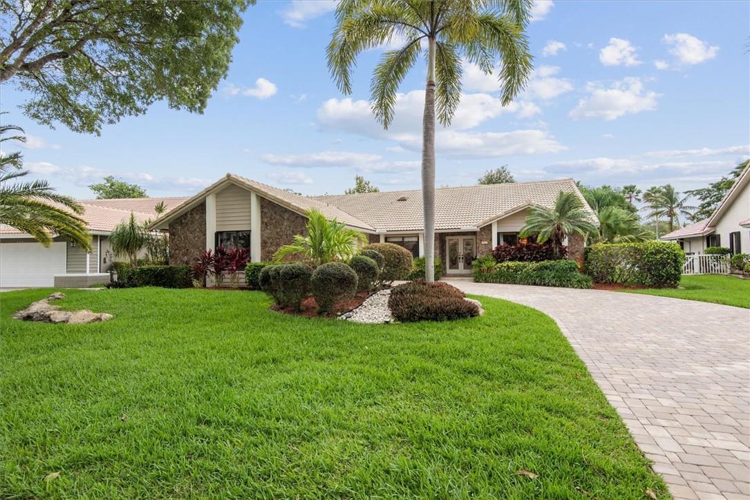 Premier Pine Ridge Waterfront Pool Home Awaits! Situated on a large 11,175 square foot lot. This home has been perfectly maintained by the long time owners, with features that include a split bedroom plan, beautiful kitchen with granite counter tops, 42" solid wood cabinets. Vaulted ceilings with new textured finish. Very nice tile flooring thru-out, new leaded glass front doors, new impact sliding doors in kitchen and family room, fully screened swimming pool with newer travertine deck, paver driveway and much more. Low HOA. Great location! Shops, restaurants, hospitals, houses of worship and expressway all close by. Schedule your private showing today!
